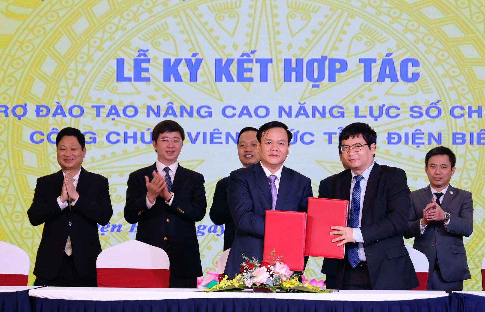 Ký kết hợp tác hỗ trợ đào tạo nâng cao năng lực số cho cán bộ, công chức, viên chức tỉnh Điện Biên. Ảnh: Ngọc Thuỷ