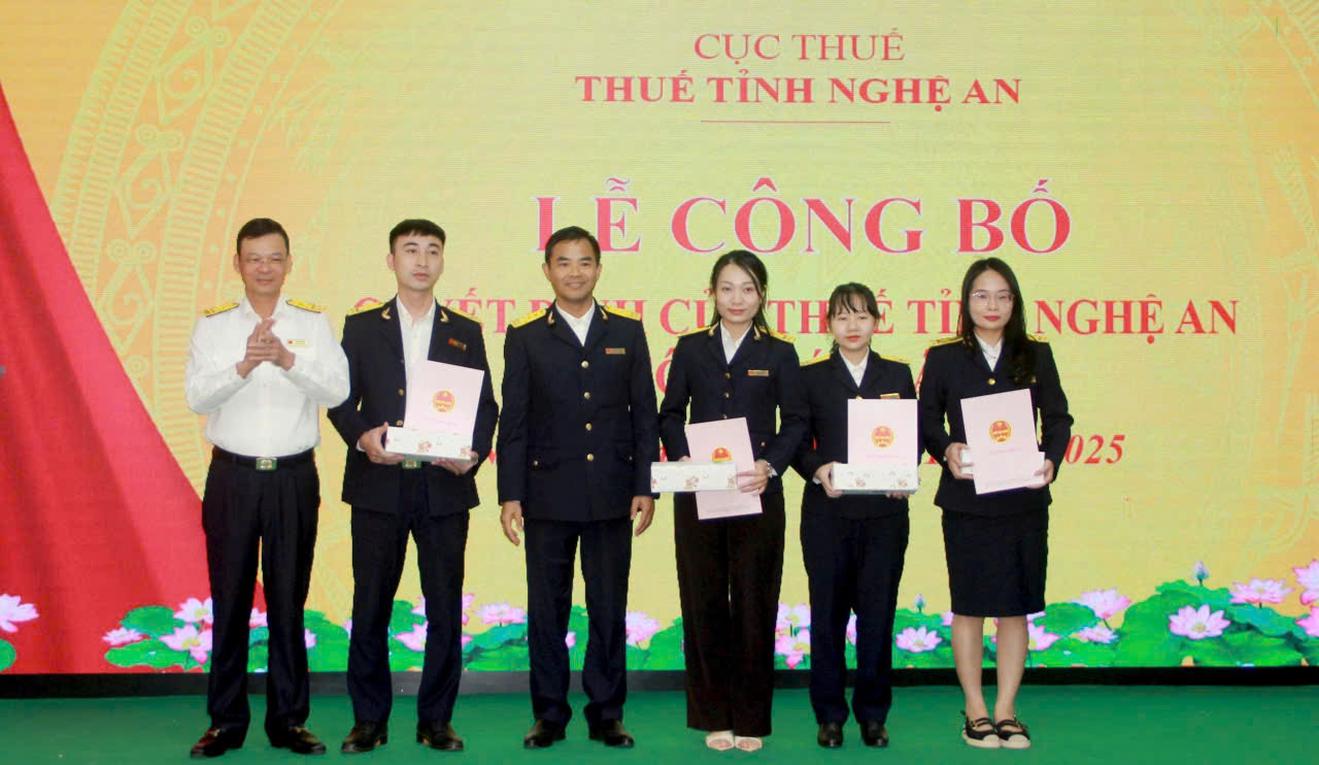 Tại buổi lễ, lãnh đạo Thuế tỉnh Nghệ An và đại diện thuế cơ sở đã trao quyết định điều động cho 38 công chức. Đây là lực lượng được kỳ vọng sẽ tăng cường sức mạnh chuyên môn cho cơ sở, nơi trực tiếp tiếp xúc người nộp thuế và là tuyến đầu trong thực thi chính sách thuế.