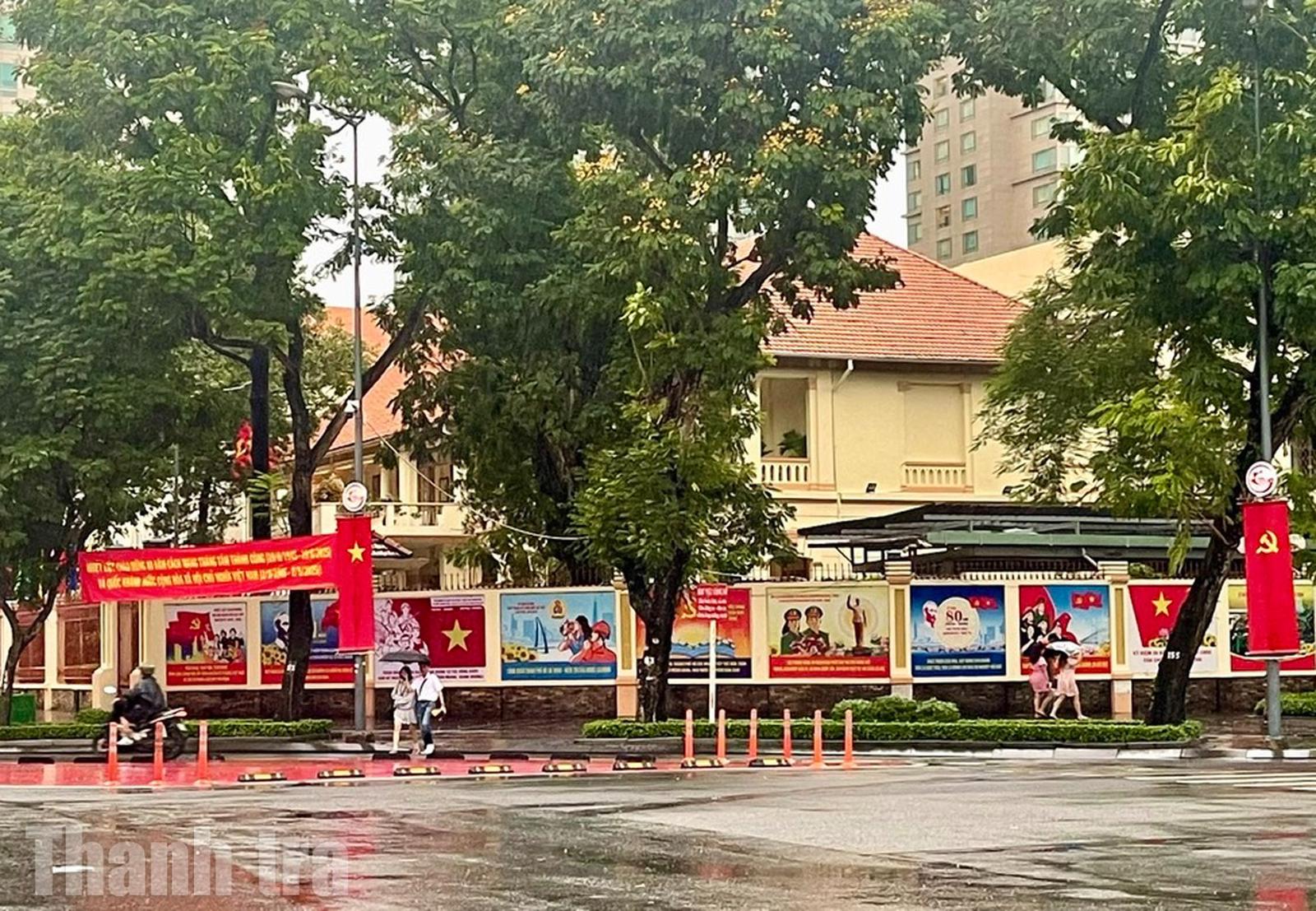 Khắp mọi nơi trên địa bàn TP, từ các phường trung tâm như Bến Nghé, Bến Thành, Tân Định, Đa Kao, Sài Gòn, Cầu Ông Lãnh... đến các phường, xã ngoại thành, đâu đâu cũng thấy màu cờ Tổ quốc rợp trời. Những con hẻm nhỏ, những khu phố bình dị cũng được bà con trang hoàng bằng cờ, đèn lồng, chậu hoa, tạo nên bức tranh sinh động, hòa nhịp cùng niềm vui chung của cả dân tộc.