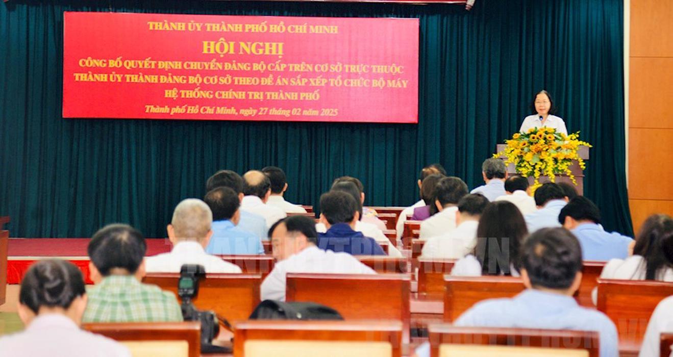 Các Đảng bộ này sẽ chuyển từ Đảng bộ cấp trên cơ sở trực thuộc Thành ủy thành Đảng bộ cơ sở trực thuộc Đảng ủy UBND TP Hồ Chí Minh từ ngày 17/3/2025.