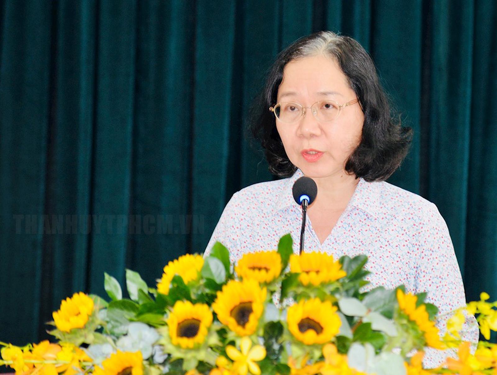 Bà Thái Thị Bích Liên, Phó Trưởng Ban Tổ chức Thành ủy TP Hồ Chí Minh công bố các quyết định tại hội nghị. Ảnh: MN