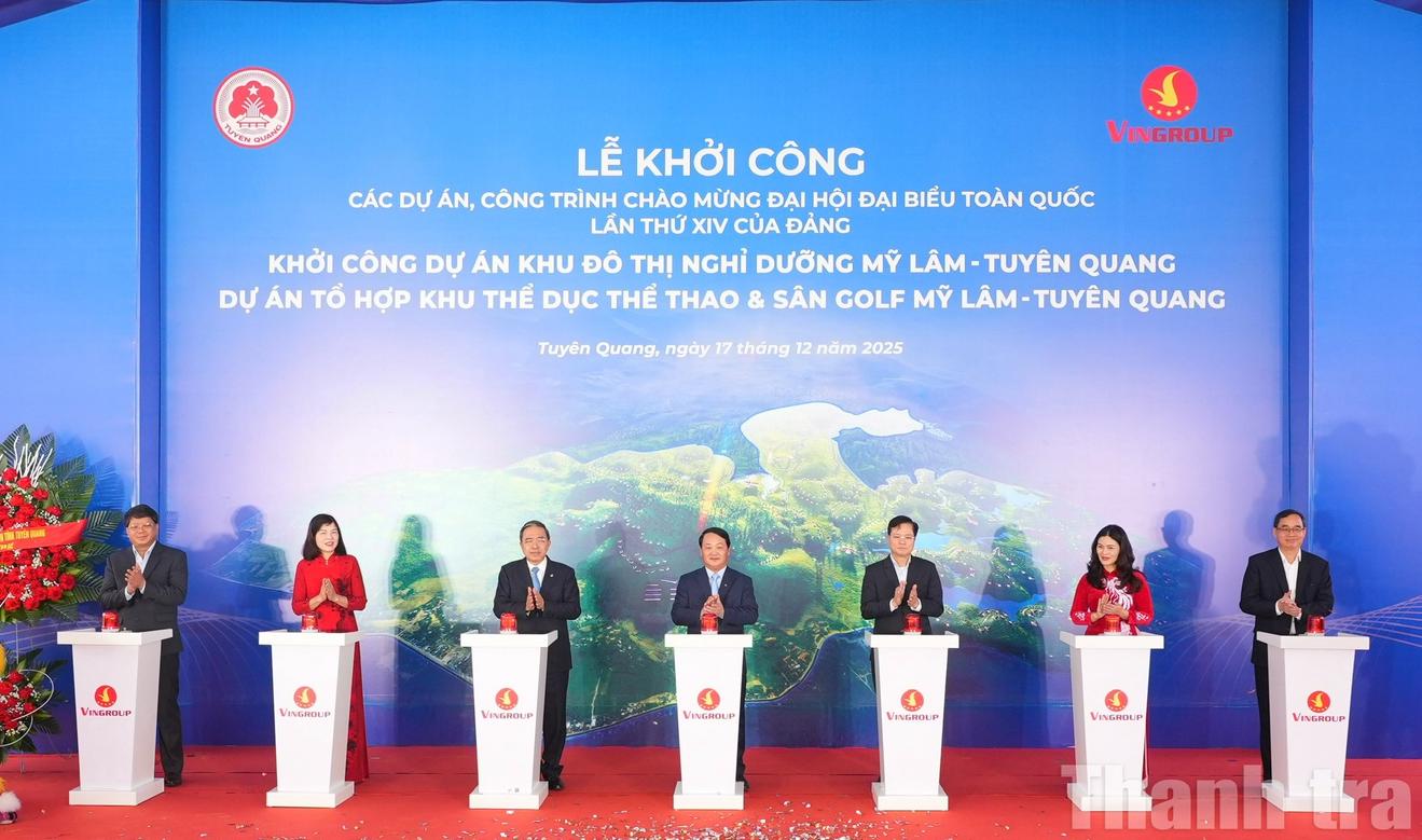 Lãnh đạo tỉnh Tuyên Quang cùng Tập đoàn Vingroup khởi công Dự án Khu đô thị nghỉ dưỡng Mỹ Lâm - Tuyên Quang và Dự án Tổ hợp Khu thể dục thể thao & sân golf Mỹ Lâm - Tuyên Quang. Ảnh: ND