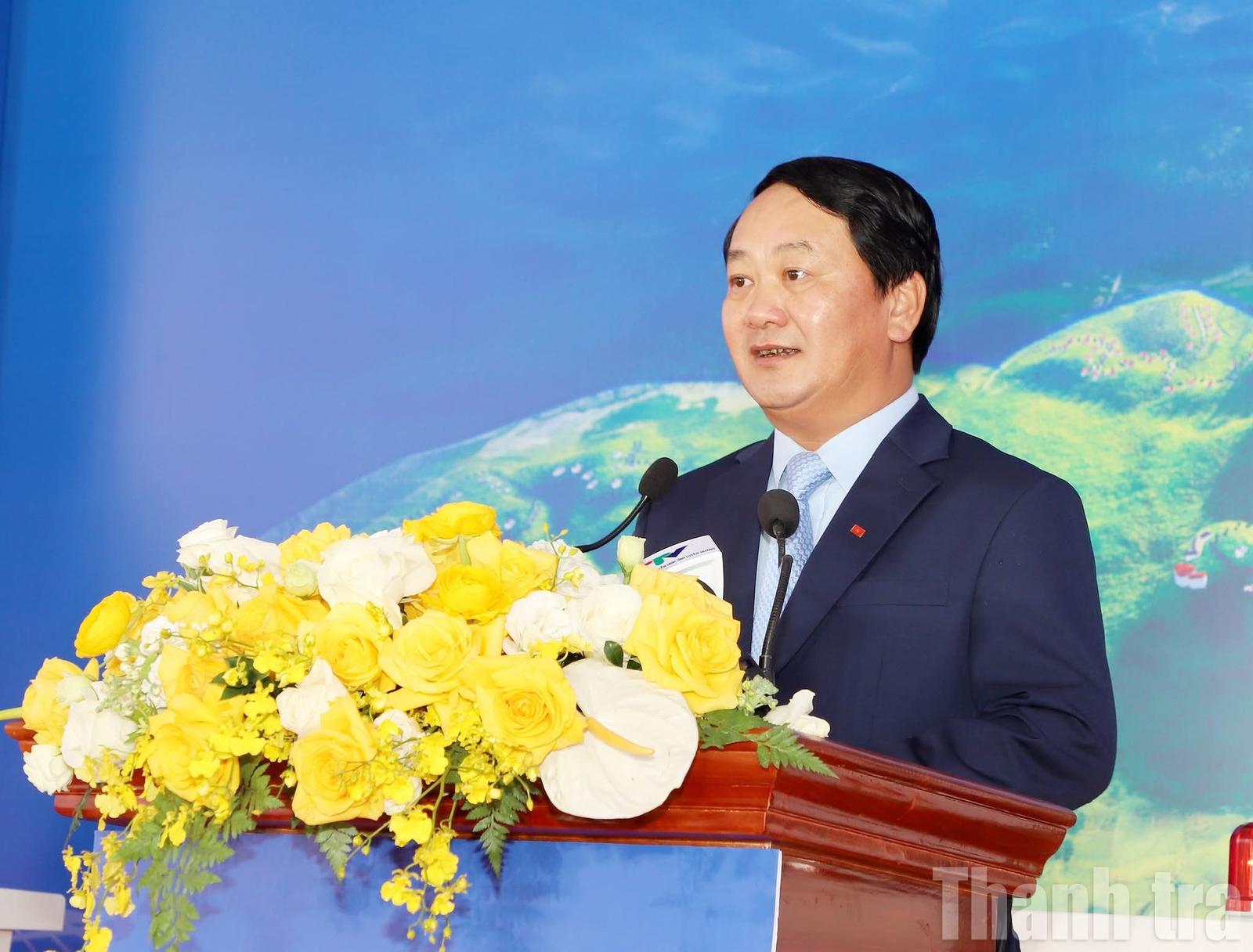 Bí thư Tỉnh ủy Tuyên Quang phát biểu tại Lễ khởi công Dự án được khởi công có Dự án Khu đô thị nghỉ dưỡng Mỹ Lâm - Tuyên Quang và Dự án Tổ hợp Khu thể dục thể thao & sân golf Mỹ Lâm - Tuyên Quang. Ảnh: ND