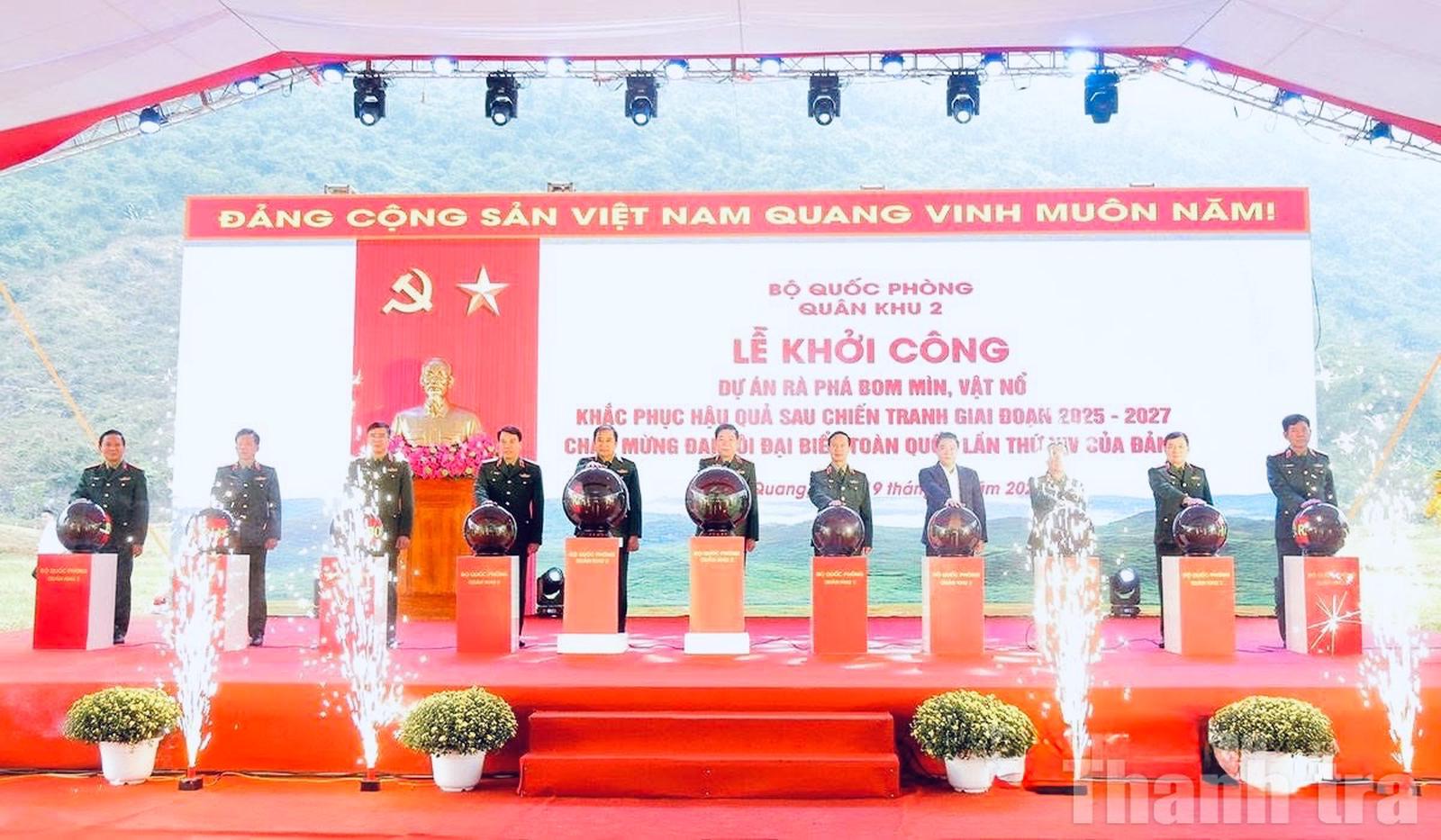 Thứ trưởng Bộ Quốc phòng, Quân khu 2 và lãnh đạo tỉnh Tuyên Quang thực hiện nghi thức khởi công Dự án Rà phá bom mìn, vật nổ khắc phục hậu quả sau chiến tranh giai, đoạn 2025 – 2027 tại Quân khu 2