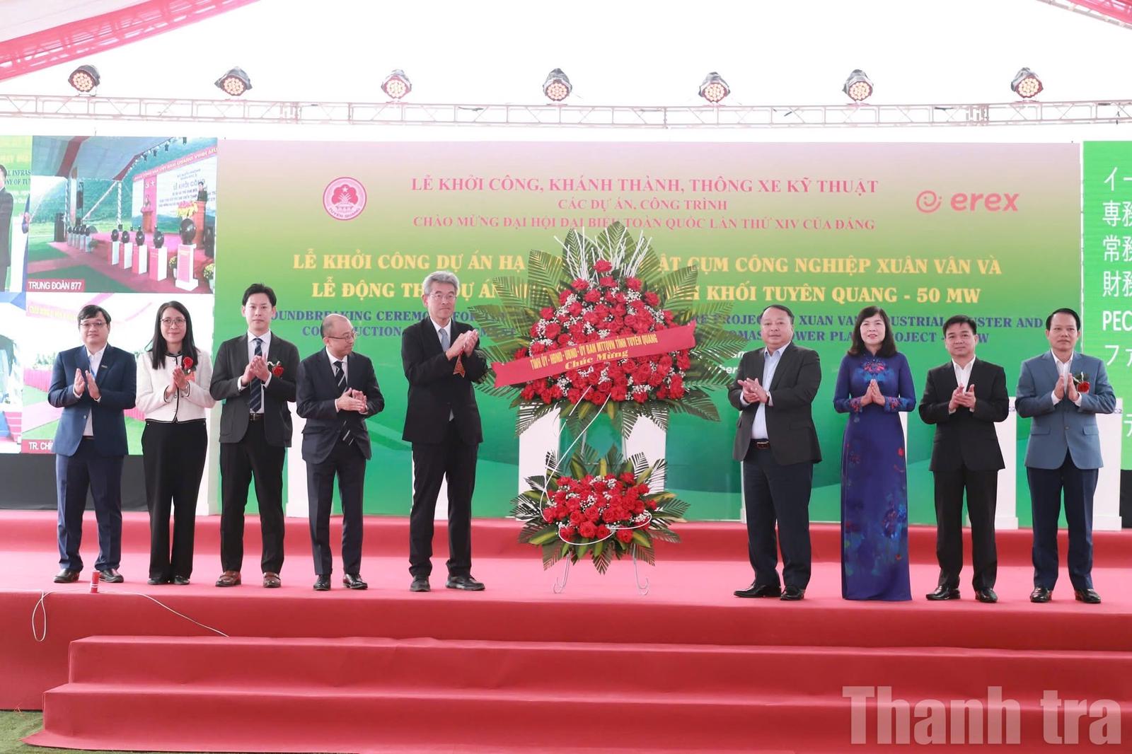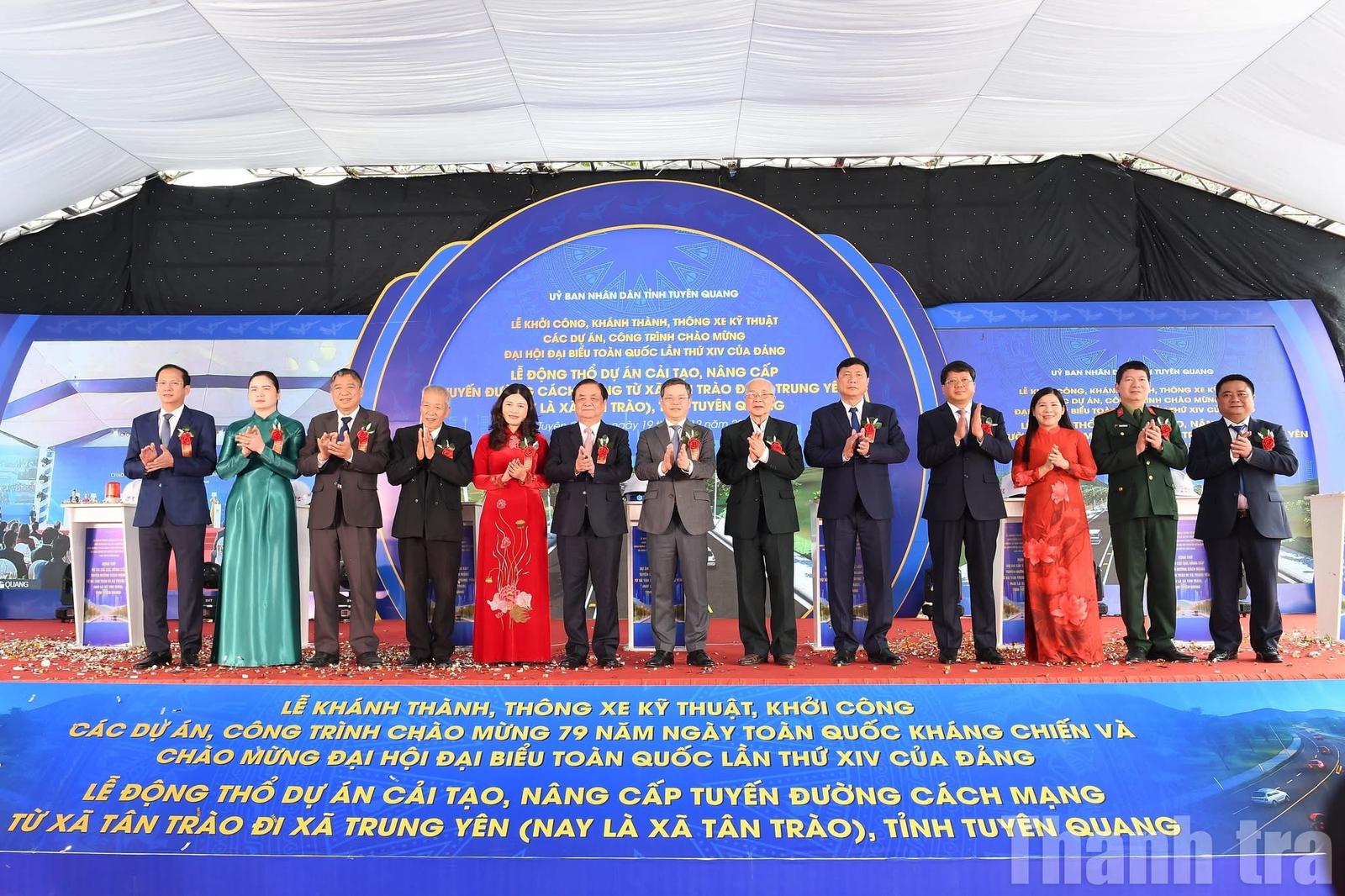 Các công trình, dự án được tỉnh Tuyên Quang đồng loạt phát lệnh khởi công gồm: Lễ thông xe Dự án Cao tốc Tuyên Quang - Hà Giang (giai đoạn 1), đoạn qua tỉnh Hà Giang; Lễ động thổ Dự án cao tốc Tuyên Quang Hà Giang (giai đoạn 2) đoạn Tân Quang đến Cửa khẩu Quốc tế Thanh Thủy; Lễ khánh thành Dự án Bảo tồn, tôn tạo Khu di tích Ban Thường trực Quốc hội, xã Trung Yên, huyện Sơn Dương, tỉnh Tuyên Quang; Lễ động thổ Dự án Cải tạo, nâng cấp tuyến đường cách mạng từ xã Tân Trào đến xã Trung Yên (nay là xã Tân Trào), tỉnh Tuyên Quang; Lễ khởi công Dự án Khu đô thị nghỉ dưỡng Mỹ Lâm và Dự án Tổ hợp khu thể dục thể thao và Sân golf Mỹ Lâm; Lễ động thổ Dự án Khu thương mại, dịch vụ Siêu thị GO; Lễ khởi công Dự án hạ tầng kỹ thuật Cụm công nghiệp Xuân Vân; Lễ động thổ Dự án Nhà máy điện sinh khối Tuyên Quang; Lễ động thổ Dự án đầu tư xây dựng Trường Chính trị tỉnh; Lễ khởi công công trình Rạp tháng 8; Lễ động thổ Dư án Khu đô thị mới bên bờ sông Lô, phường An Tường và Lễ động thổ Dự án Khu đô thị An Tường Riverside.