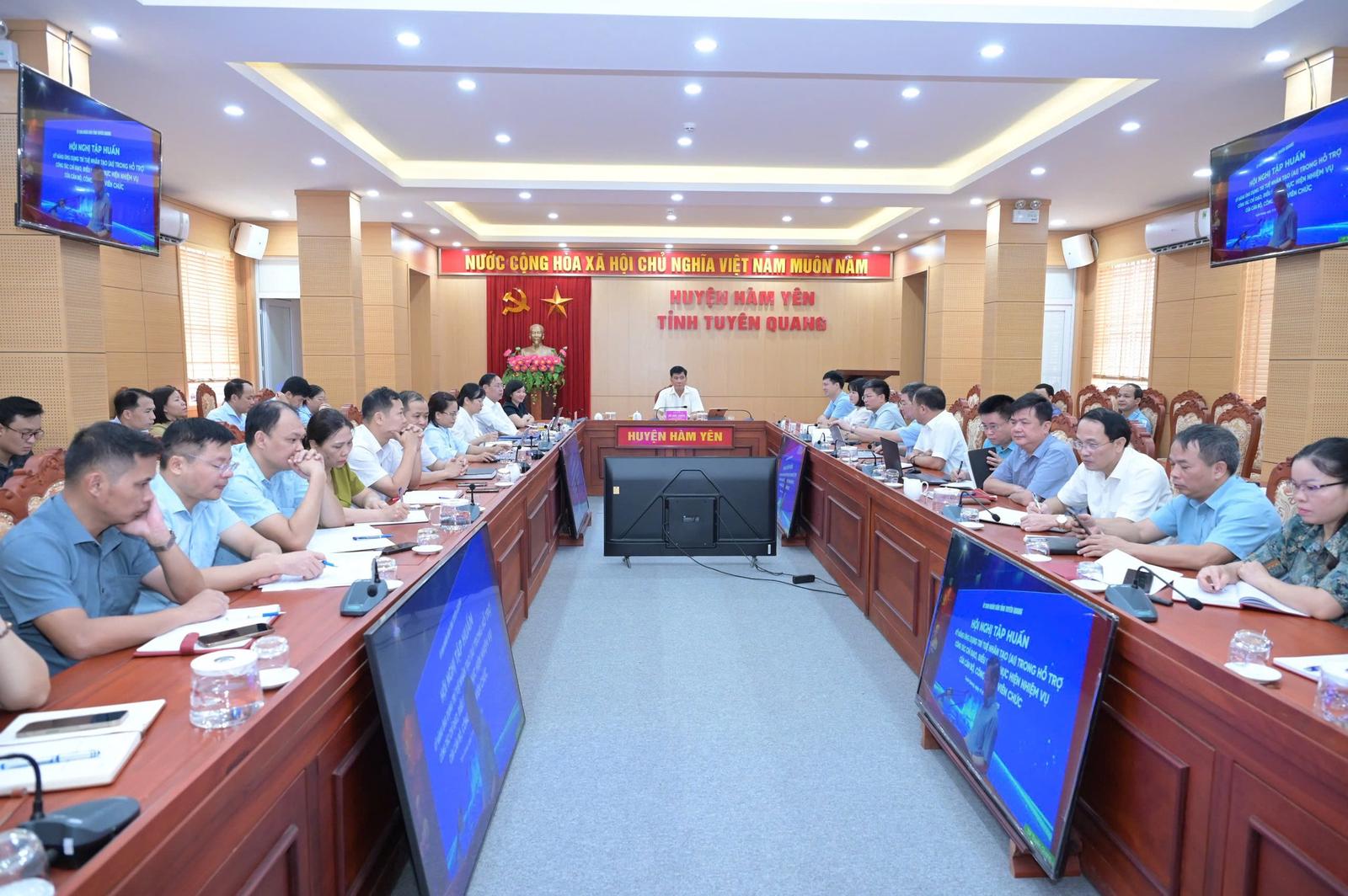 Để đảm bảo hiệu quả tập huấn cũng như tạo thuận lợi cho cán bộ, công chức tại các địa phương, Hội nghị được tổ chức theo hình thức trực tiếp kết hợp trực tuyến đến 154 điểm cầu của các ban, sở, ngành, cơ quan, đơn vị thuộc tỉnh, UBND các huyện, xã, thị trấn trên địa bàn tỉnh Tuyên Quang và điểm cầu Sở Khoa học và Công nghệ tỉnh Hà Giang.