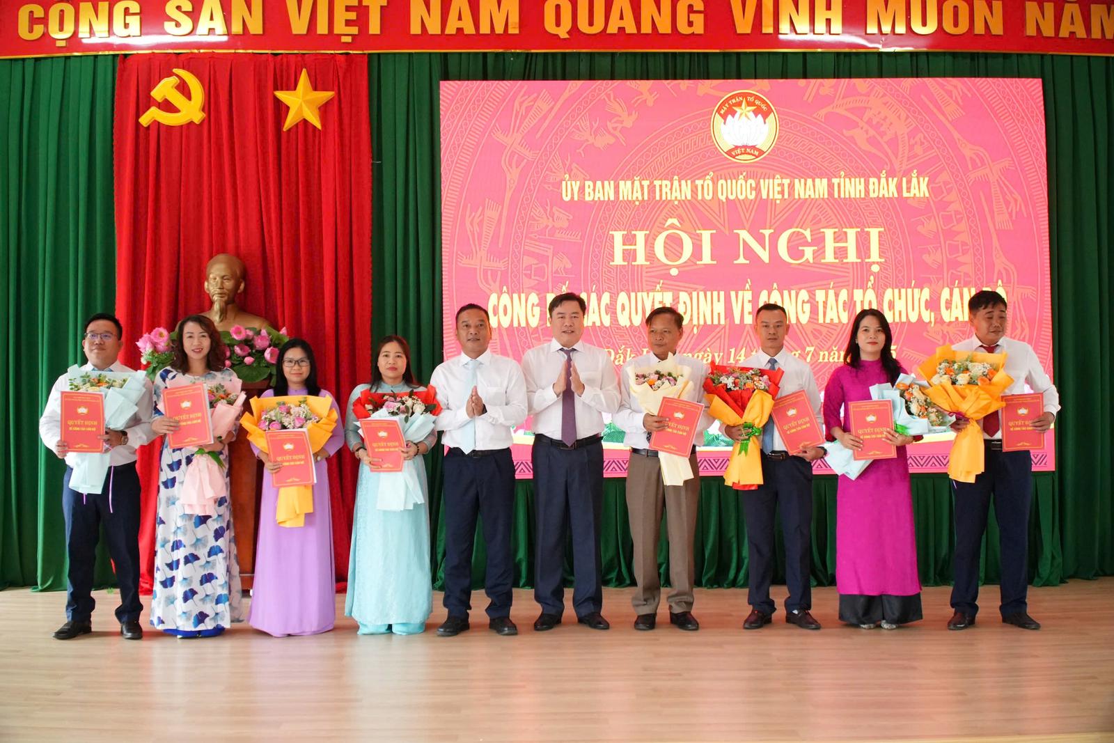 Sáng 14/7, Ban Thường trực Ủy ban Mặt trận Tổ quốc (MTTQ) Việt Nam tỉnh Đắk Lắk đã tổ chức Hội nghị công bố và trao các quyết định quan trọng về công tác tổ chức và cán bộ.