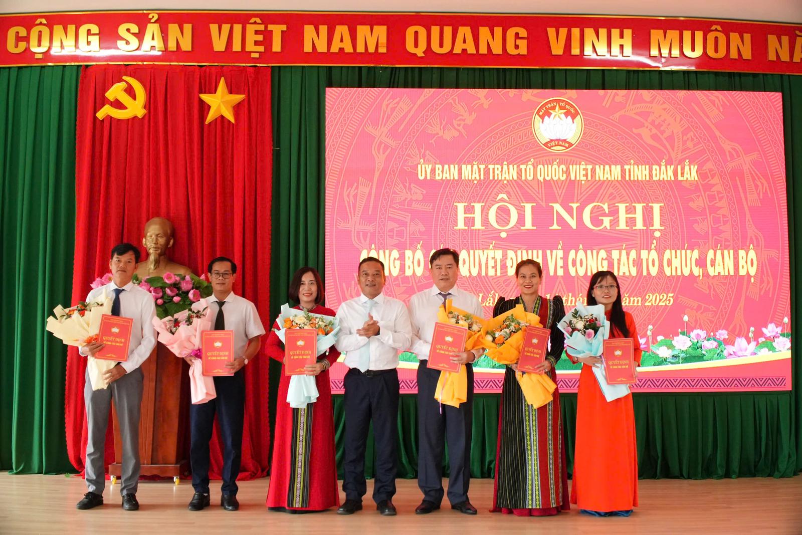 Tại hội nghị, Ban Tổ chức đã công bố và trao quyết định thành lập các Ban chuyên môn và văn phòng cơ quan, đánh dấu một giai đoạn mới trong cơ cấu tổ chức của Ủy ban MTTQ Việt Nam tỉnh Đắk Lắk.