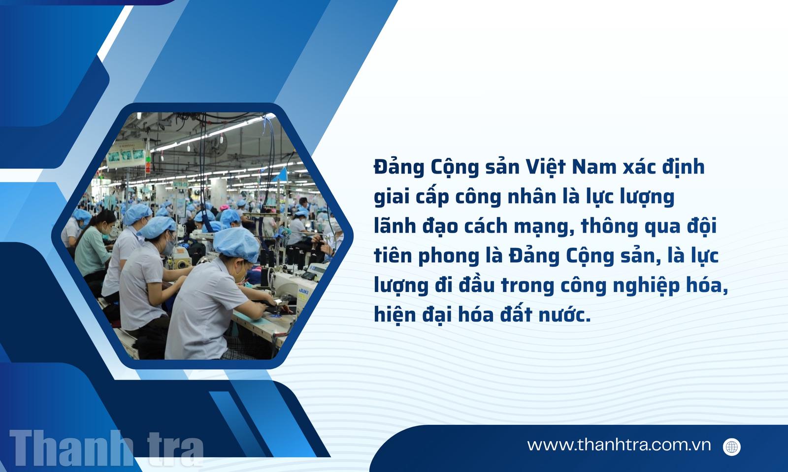 Đảng Cộng sản Việt Nam xác định giai cấp công nhân là lực lượng lãnh đạo cách mạng, thông qua đội tiên phong là Đảng Cộng sản, là lực lượng đi đầu trong công nghiệp hóa, hiện đại hóa đất nước. Quan điểm này được khẳng định trong nhiều nghị quyết quan trọng của Ban Chấp hành Trung ương Đảng, Bộ Chính trị và các văn kiện Đại hội Đảng toàn quốc gần đây.