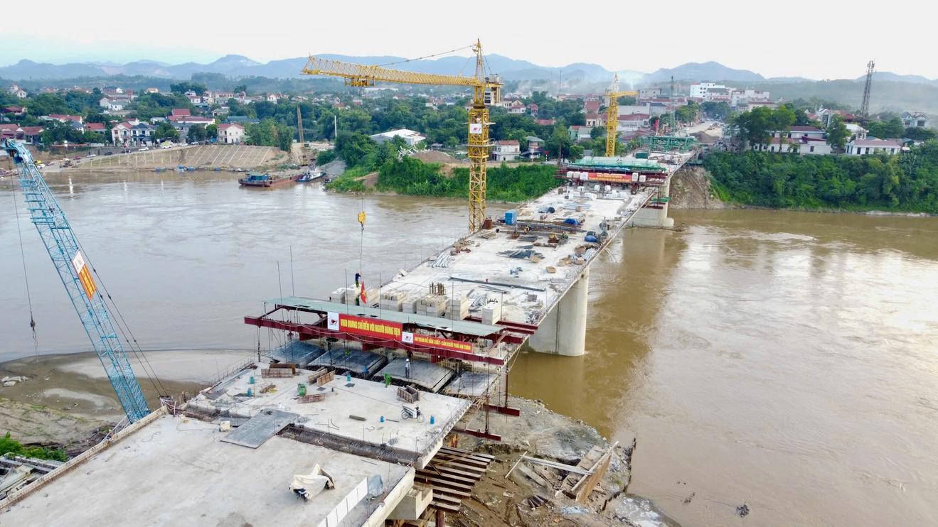 Dự án cầu Phong Châu (Phú Thọ) hợp long ngày 27/8, vượt tiến độ gần 2 tháng so với kế hoạch. Ảnh: Khánh Trang