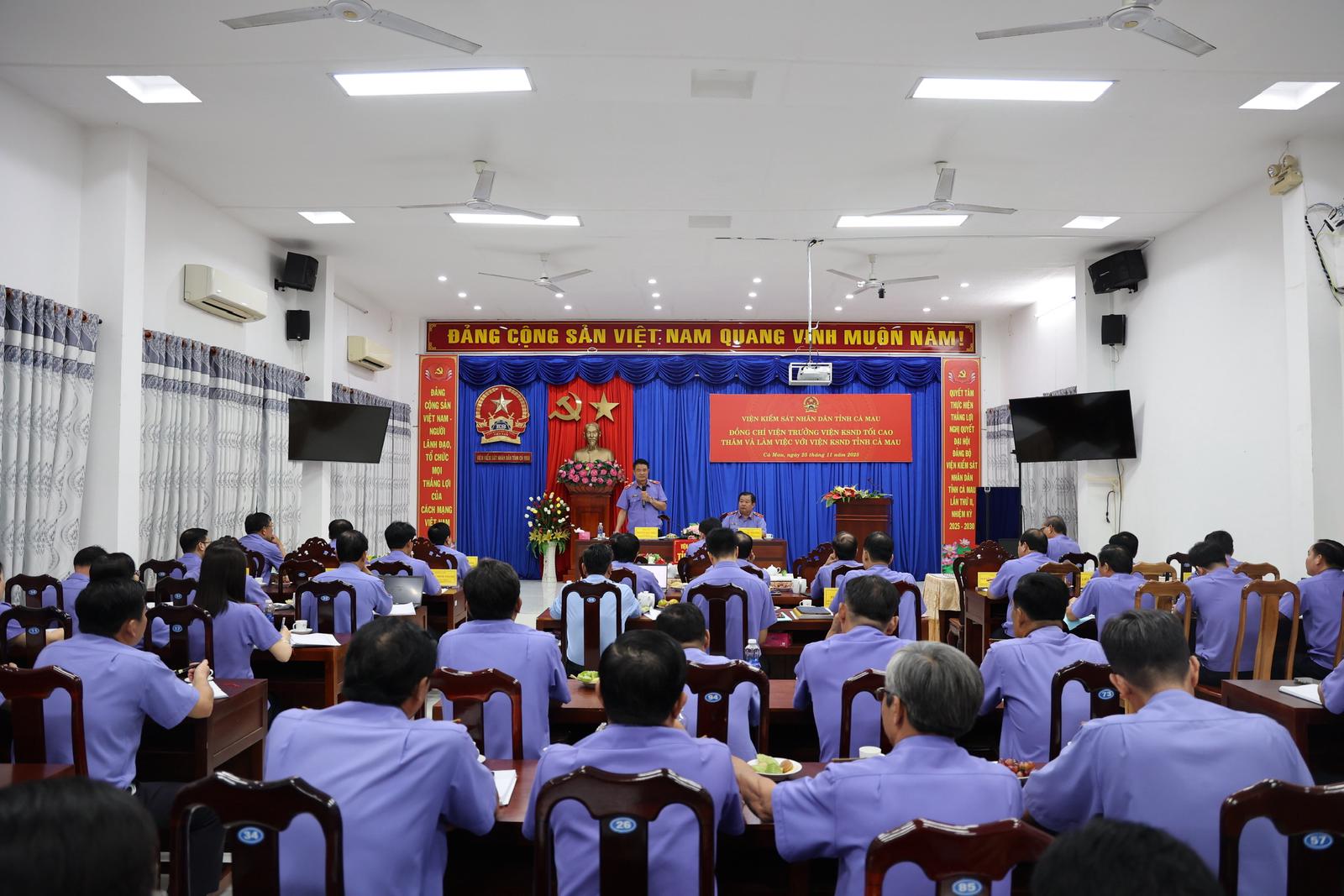 Toàn cảnh buổi làm việc của Viện trưởng VKSND tối cao Nguyễn Huy Tiến tại VKSND tỉnh Cà Mau. Ảnh: Văn Tình