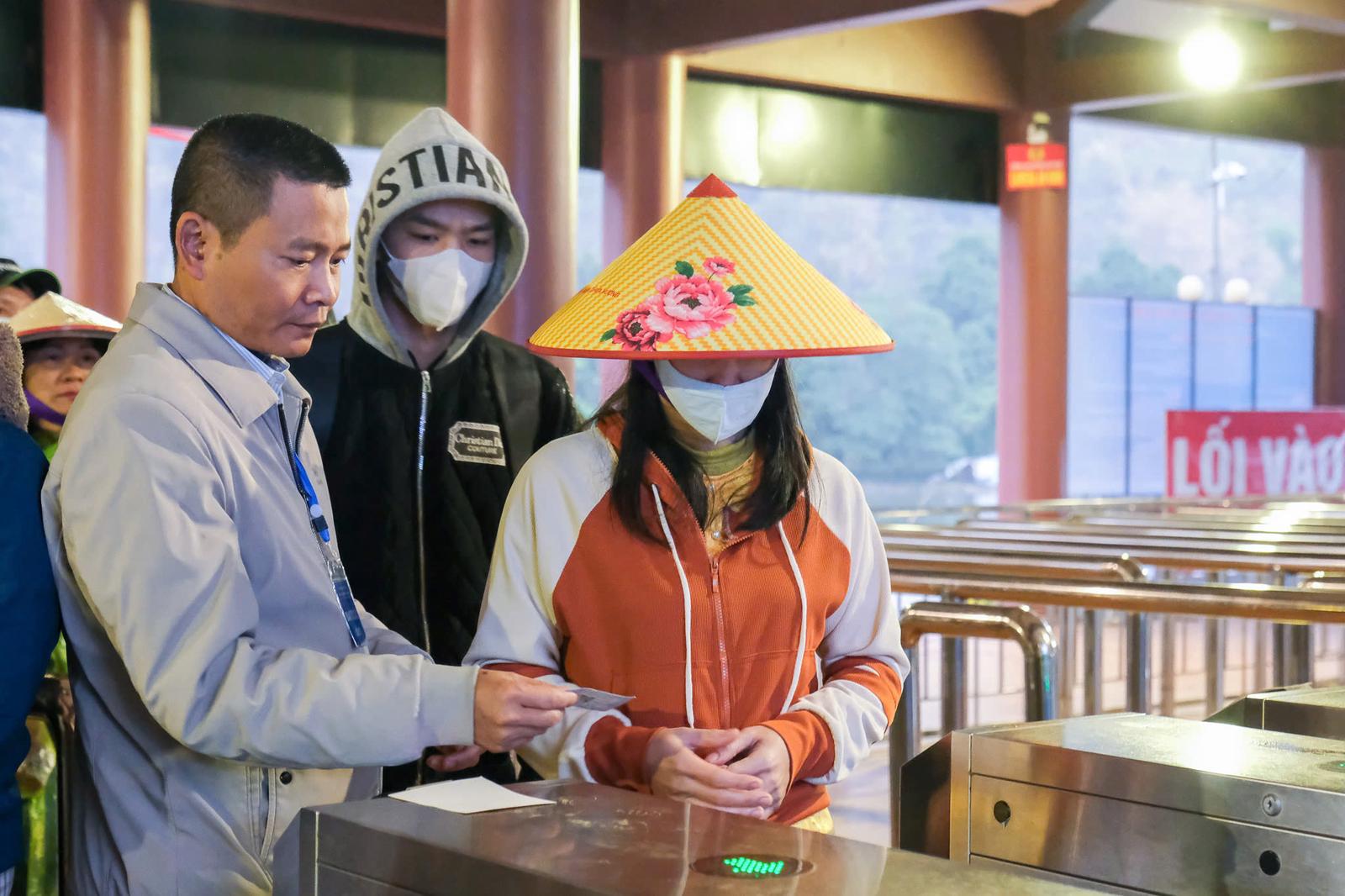 Vé thắng cảnh điện tử thay cho vé in giấy, tạo thuận lợi cho du khách đến lễ hội chùa Hương 2025. Ảnh: Hà Quân