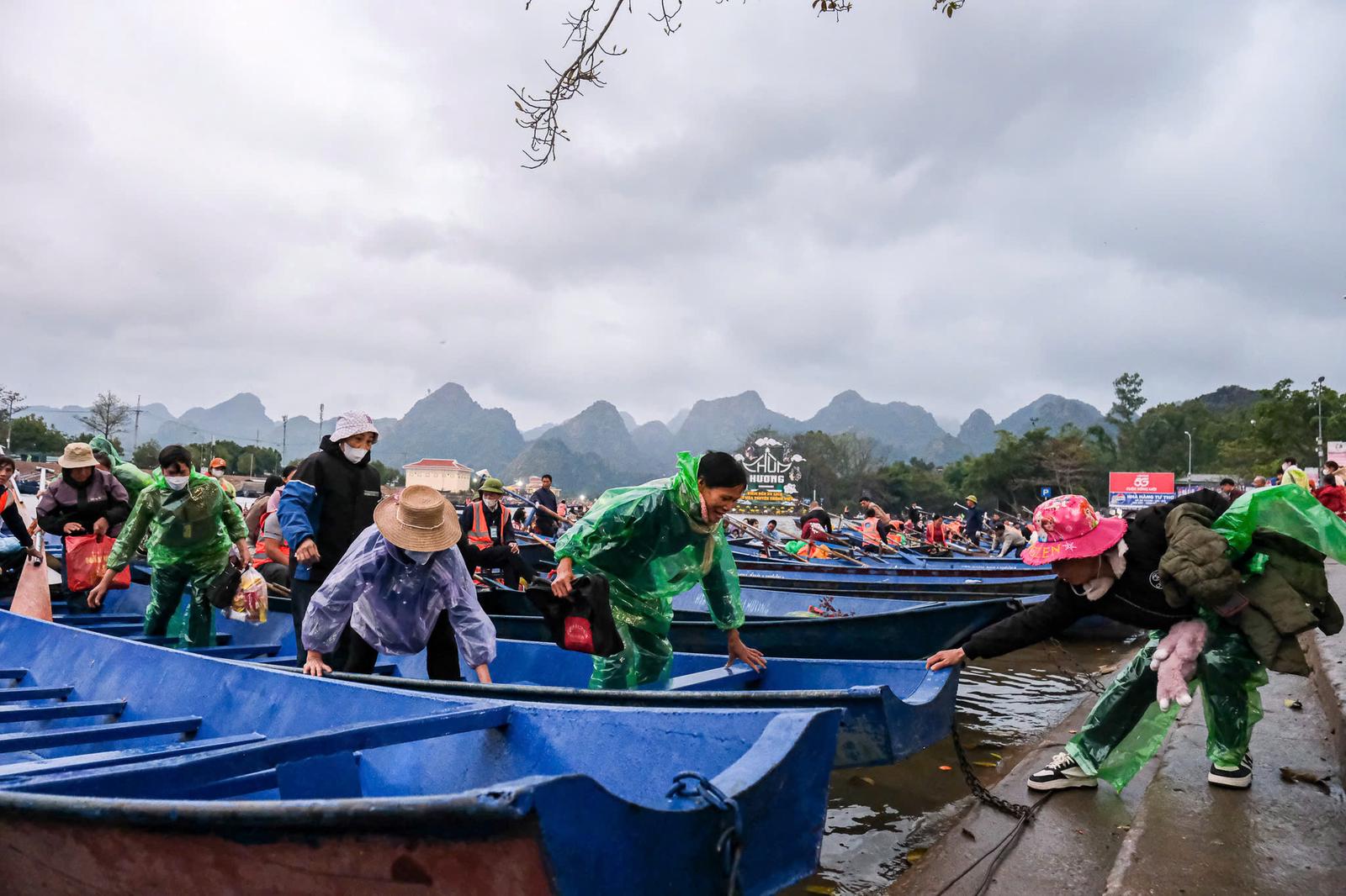 Dù thời tiết có mưa phùn và giá rét, nhưng ngay trong ngày khai hội đã rất đông du khách thập phương đổ về chùa Hương. Ảnh: Hà Quân