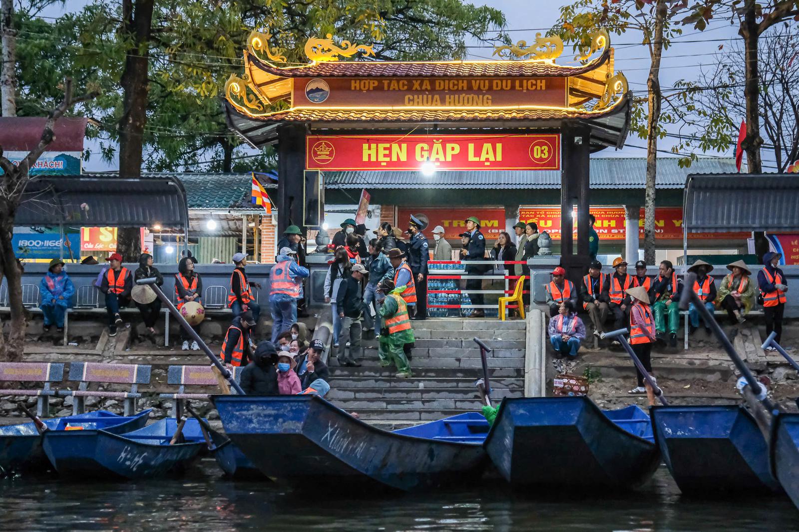 Du khách thập phương đổ về khai hội chùa Hương từ tinh mơ sáng. Ảnh: Hà Quân