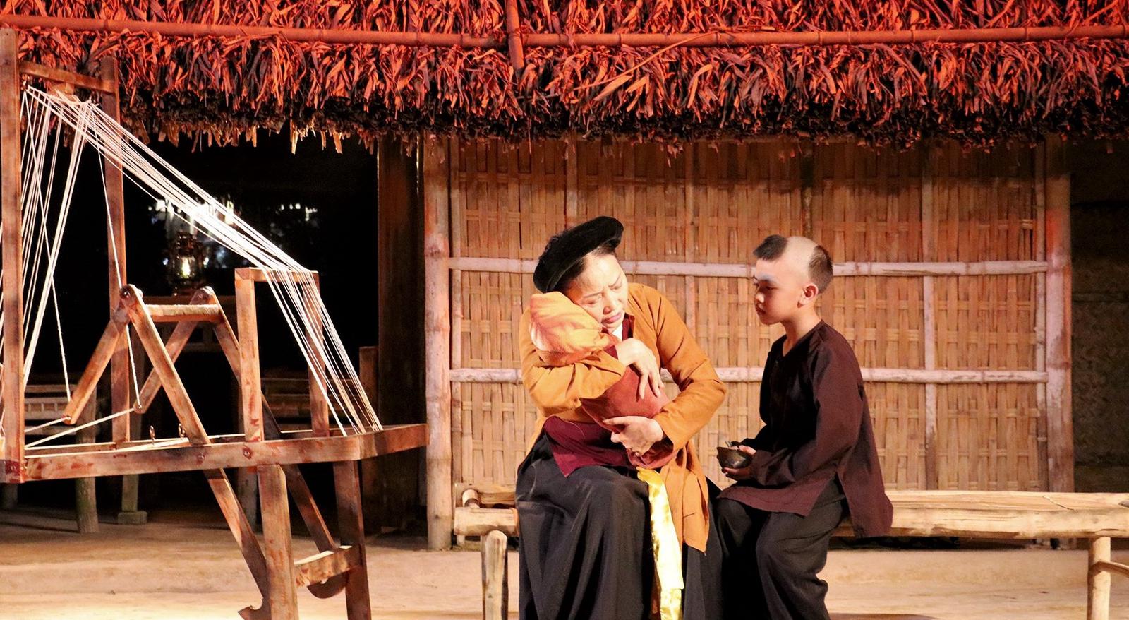 Hoạt cảnh Dân ca Nghệ Tĩnh "Lời ru của Mẹ" của Trung tâm Nghệ thuật Truyền thống tỉnh Nghệ An gây xúc động mạnh mẽ. Ảnh: NTV