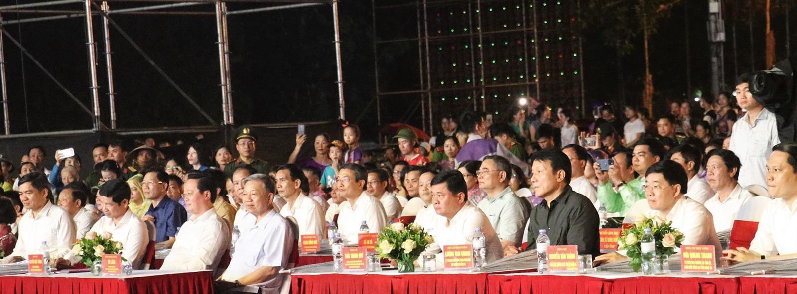Tham dự có Đại tướng Tô Lâm - Ủy viên Bộ Chính trị, Bộ trưởng Bộ Công an; Thượng tướng Lương Tam Quang - Ủy viên Trung ương Đảng, Thứ trưởng Bộ Công an; Hồ An Phong – Thứ trưởng Bộ Văn hoá, Thể thao và Du lịch; lãnh đạo Quân khu 4; cùng lãnh đạo tỉnh Nghệ An có các ông Thái Thanh Quý - Ủy viên Trung ương Đảng, Bí thư Tỉnh ủy; Nguyễn Văn Thông – Phó Bí thư Thường trực Tỉnh ủy; Nguyễn Đức Trung – Phó Bí thư Tỉnh ủy, Chủ tịch UBND tỉnh.