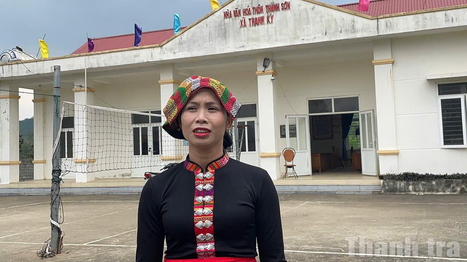 Chị Lương Thị Dương, dân tộc Thái, hội viên Hội Phụ nữ thôn Thanh Sơn, xã Thanh Kỳ người được lựa chọn vào đội văn nghệ của thôn để biểu diễn vào những ngày hội, ngày Tết. Ảnh: Trịnh Thịnh - Văn Thanh