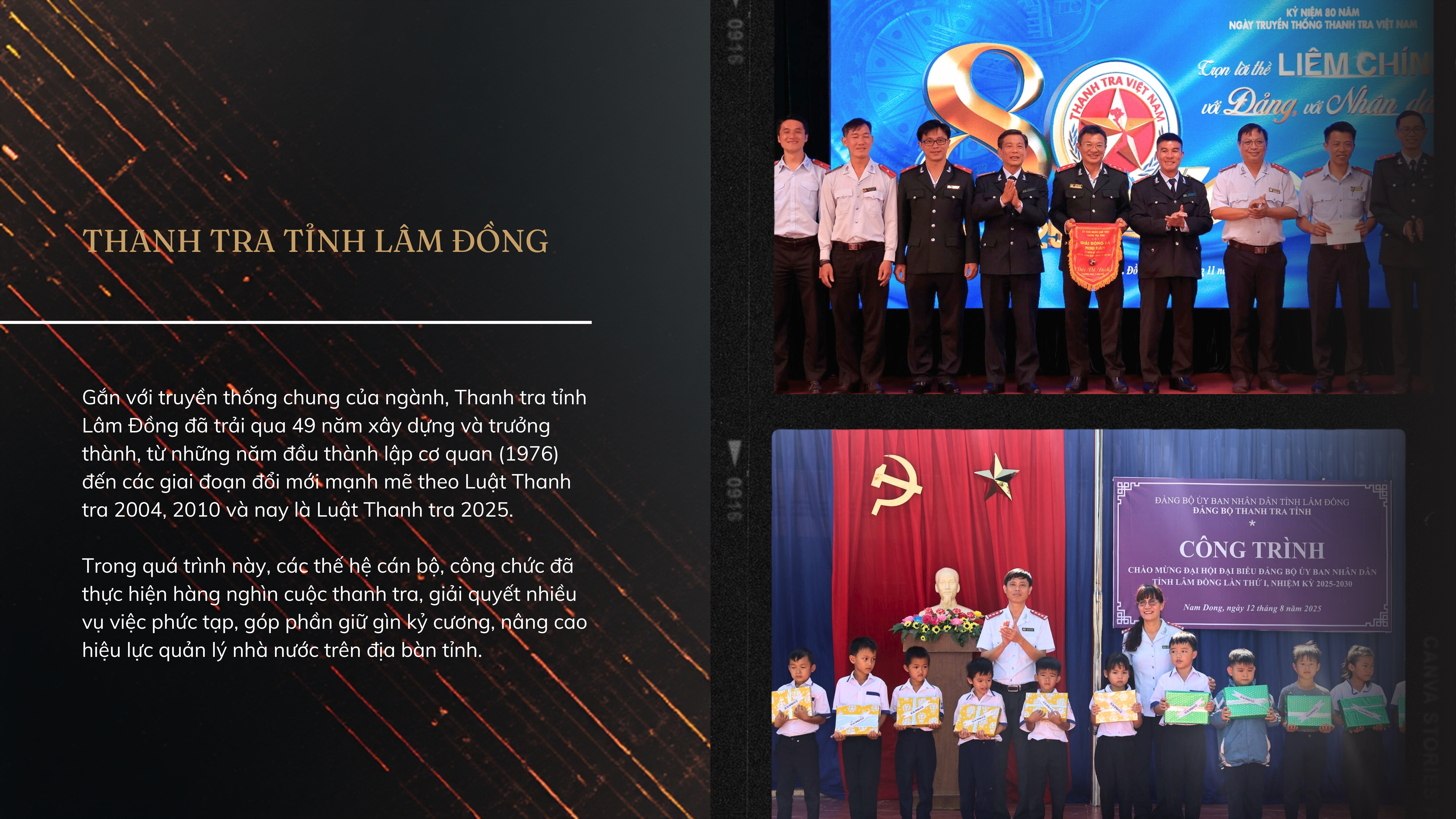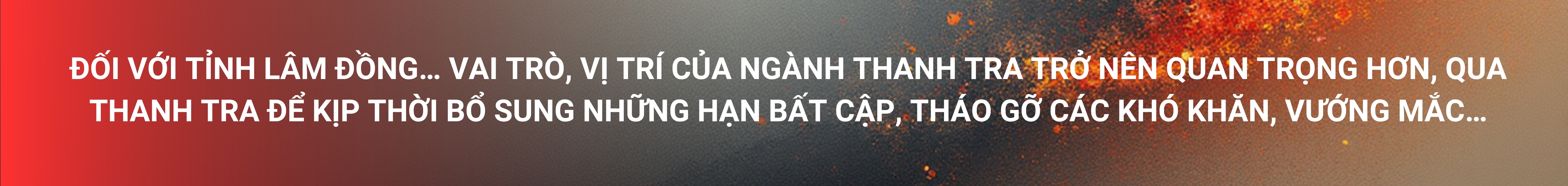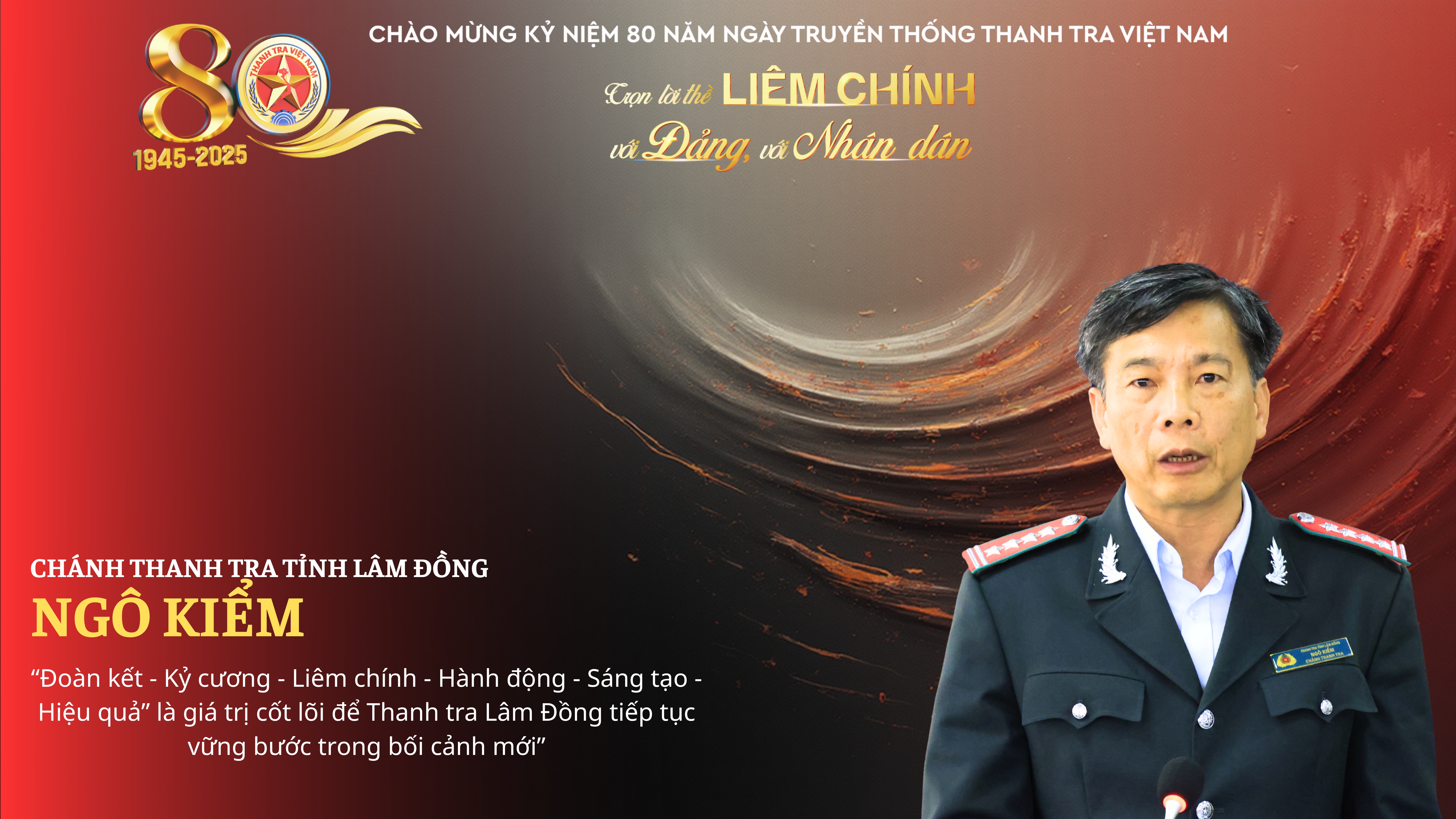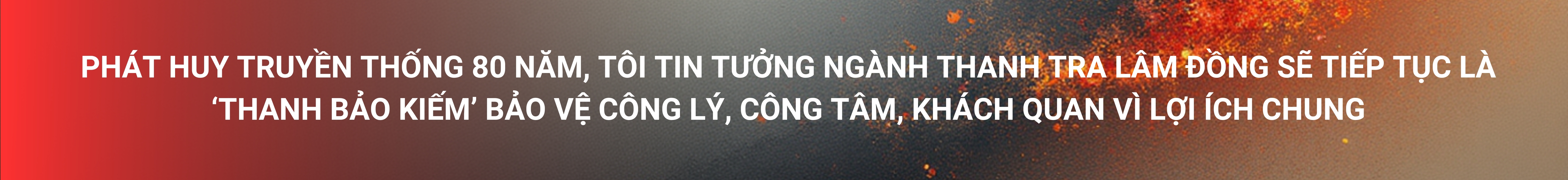 Riêng tại Lâm Đồng, sau sáp nhập địa giới, tỉnh có diện tích lớn nhất cả nước, với nhiều áp lực trong quản lý đất đai, rừng, quy hoạch....Điều này càng khẳng định vai trò, vị trí của ngành Thanh tra trở nên quan trọng hơn, qua thanh tra để kịp thời bổ sung những hạn bất cập, tháo gỡ các khó khăn, vướng mắc. Phát huy truyền thống 80 năm, tôi tin tưởng ngành Thanh tra Lâm Đồng sẽ tiếp tục là "thanh bảo kiếm" bảo vệ công lý, công tâm, khách quan vì lợi ích chung.