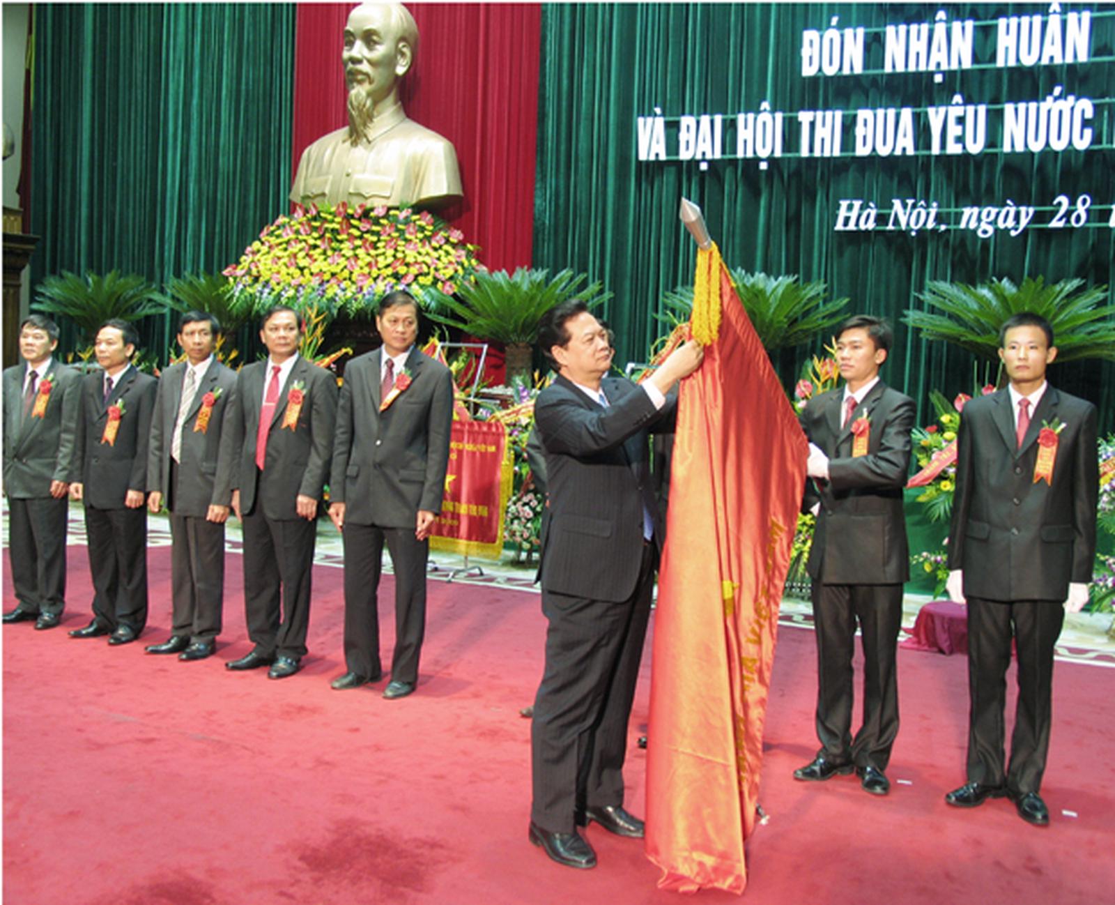 Đồng chí Nguyễn Tấn Dũng, Ủy viên Bộ Chính trị, Thủ tướng Chính phủ gắn Huân chương Sao Vàng lên lá cờ truyền thống ngành Thanh tra nhân Lễ kỷ niệm 65 năm Ngày Truyền thống Thanh tra Việt Nam. Ảnh: Tư liệu/Báo Thanh tra