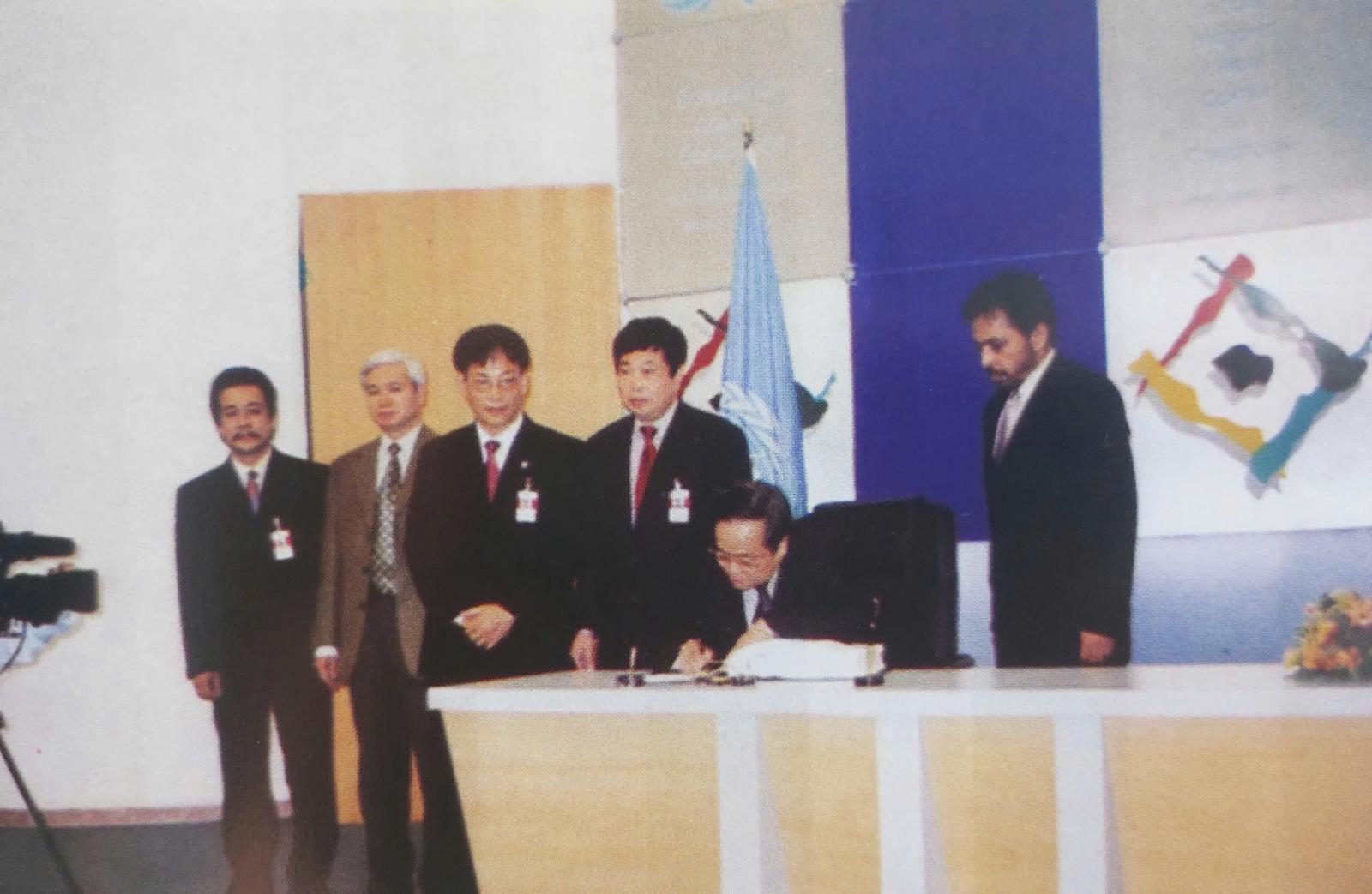 Đồng chí Quách Lê Thanh, Ủy viên Trung ương Đảng, Tổng Thanh tra, thừa ủy quyền của Thủ tướng Chính phủ ký Công ước của Liên hợp quốc về chống tham nhũng tại Mê-hi-cô, tháng 12/2003. Ảnh: Tư liệu/Báo Thanh tra