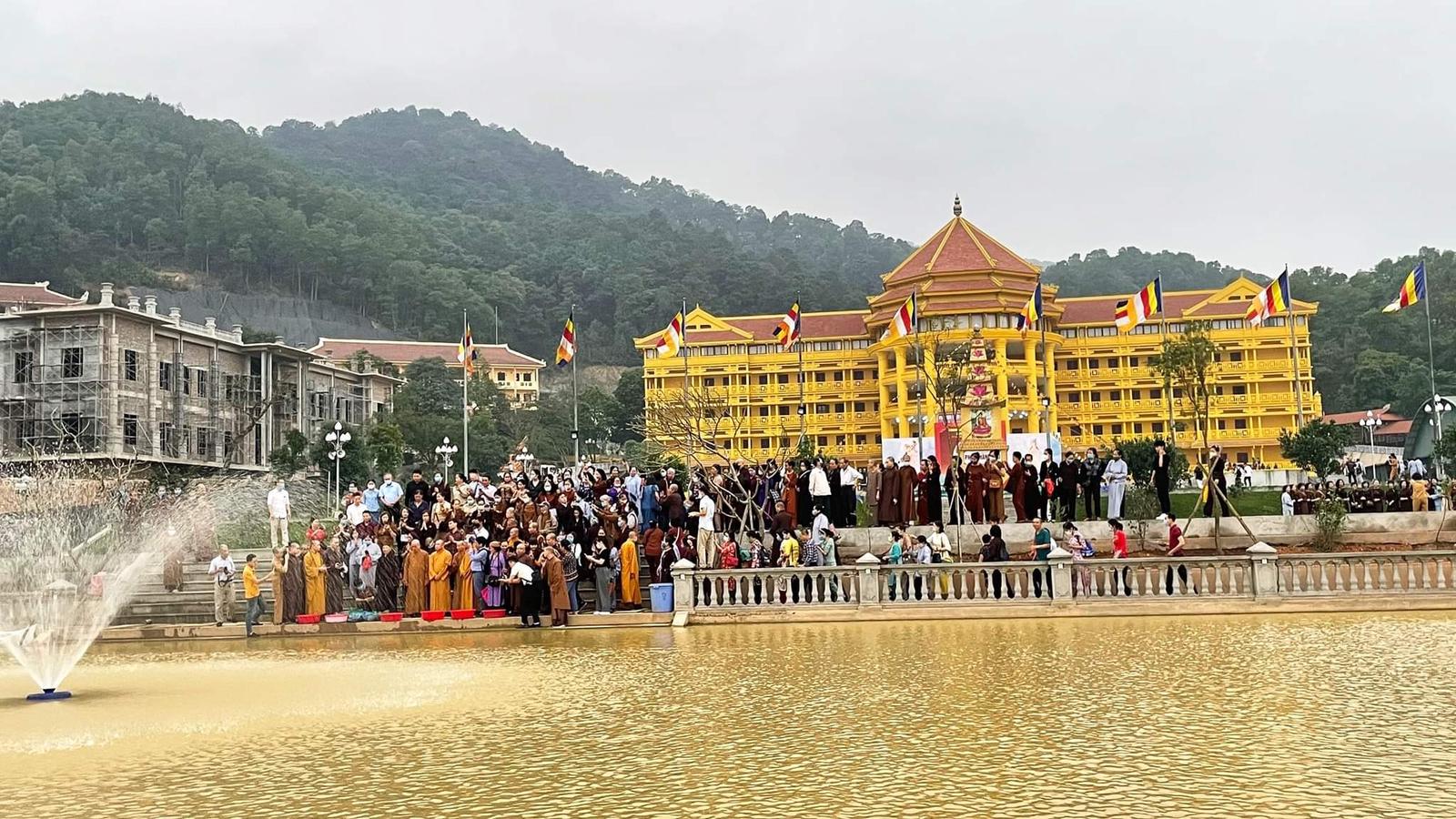 Lễ phóng sinh tại ao cá Giảng đường Viên Quang. Ảnh: Trà Vân