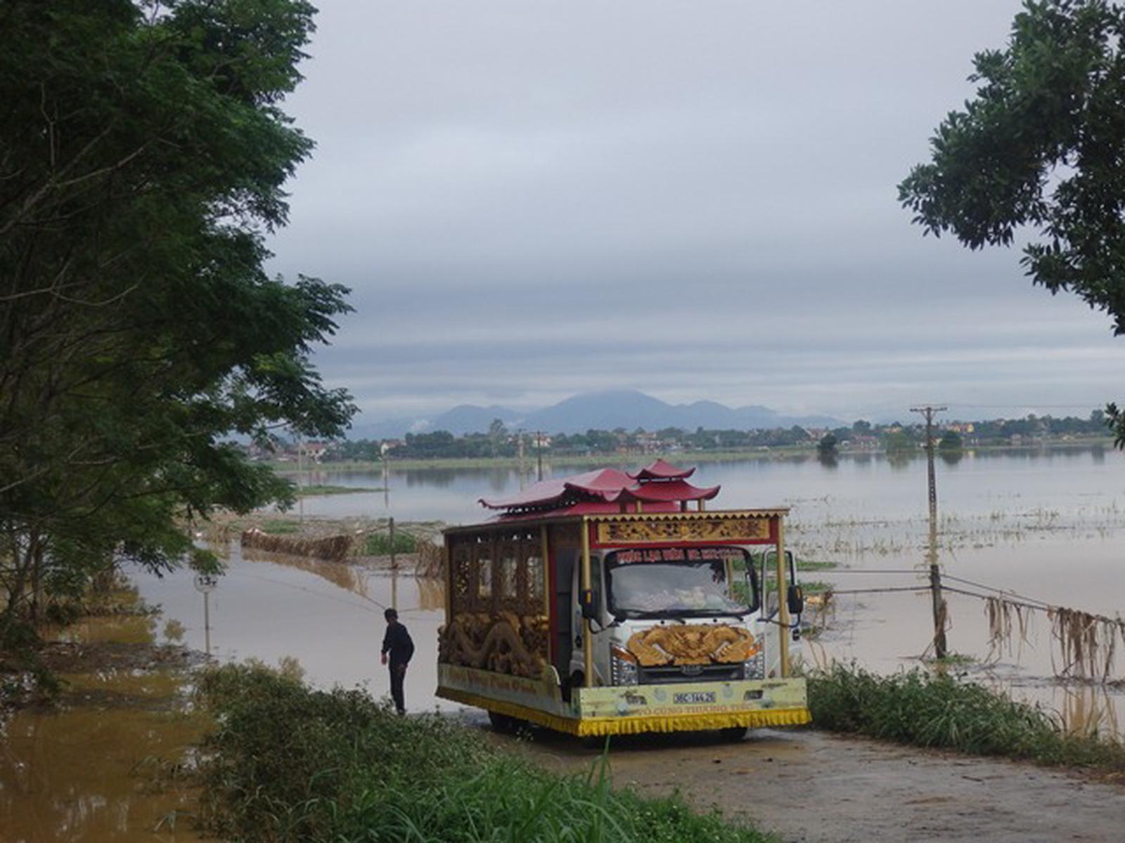 Nước lũ ở Thanh Hóa vẫn còn ngập và chảy xiết ở nhiều nơi. Ảnh: Văn Thanh