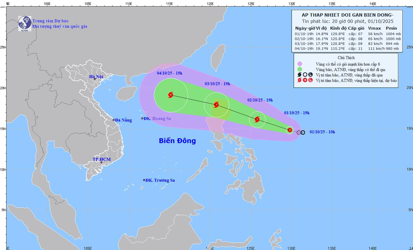 Dự kiến vào 19 giờ tối nay (2/10), áp thấp nhiệt đới sẽ mạnh lên thành bão