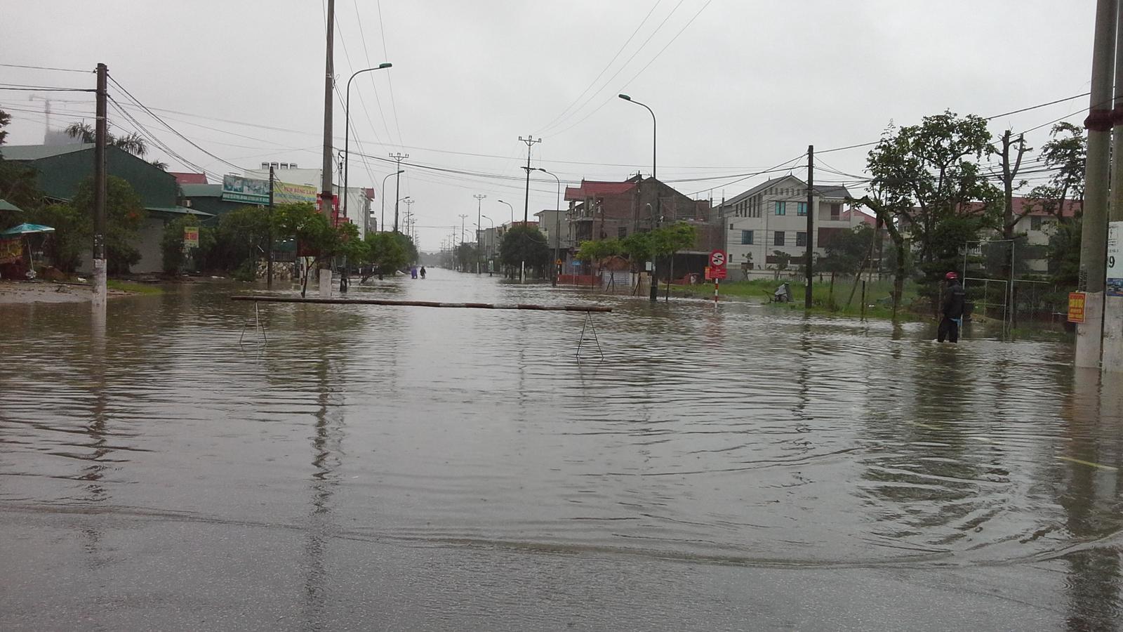 Mưa lớn cộng với các hồ xả lũ cũng gây ngập lụt cục bộ các tuyến đường, nhà dân khu vực thấp trũng tại thành phố Hà Tĩnh như Nguyễn Du, Trần Phú, khu Sông Đà, Nguyễn Công Trứ - TP Hà Tĩnh.