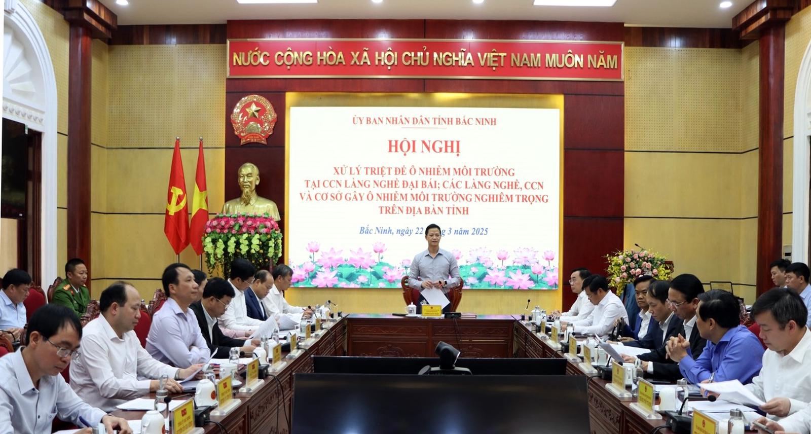 Chiều 22/3, UBND tỉnh Bắc Ninh tổ chức hội nghị về xử lý ô nhiễm môi trường CCN làng nghề Đại Bái (huyện Gia Bình) và các làng nghề, CCN, cơ sở gây ô nhiễm môi trường nghiêm trọng trên địa bàn tỉnh.