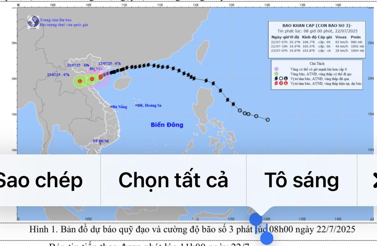 Dự báo sau 10h sáng nay, bão số 3 sẽ đi vào đât liền, khu vực Nam Hải Phòng và Ninh Bình. Với cường độ khoảng cấp 9 giật cấp 10-11, sâu trong đất liền cường độ khoảng cấp 6-7 giật cấp 8.