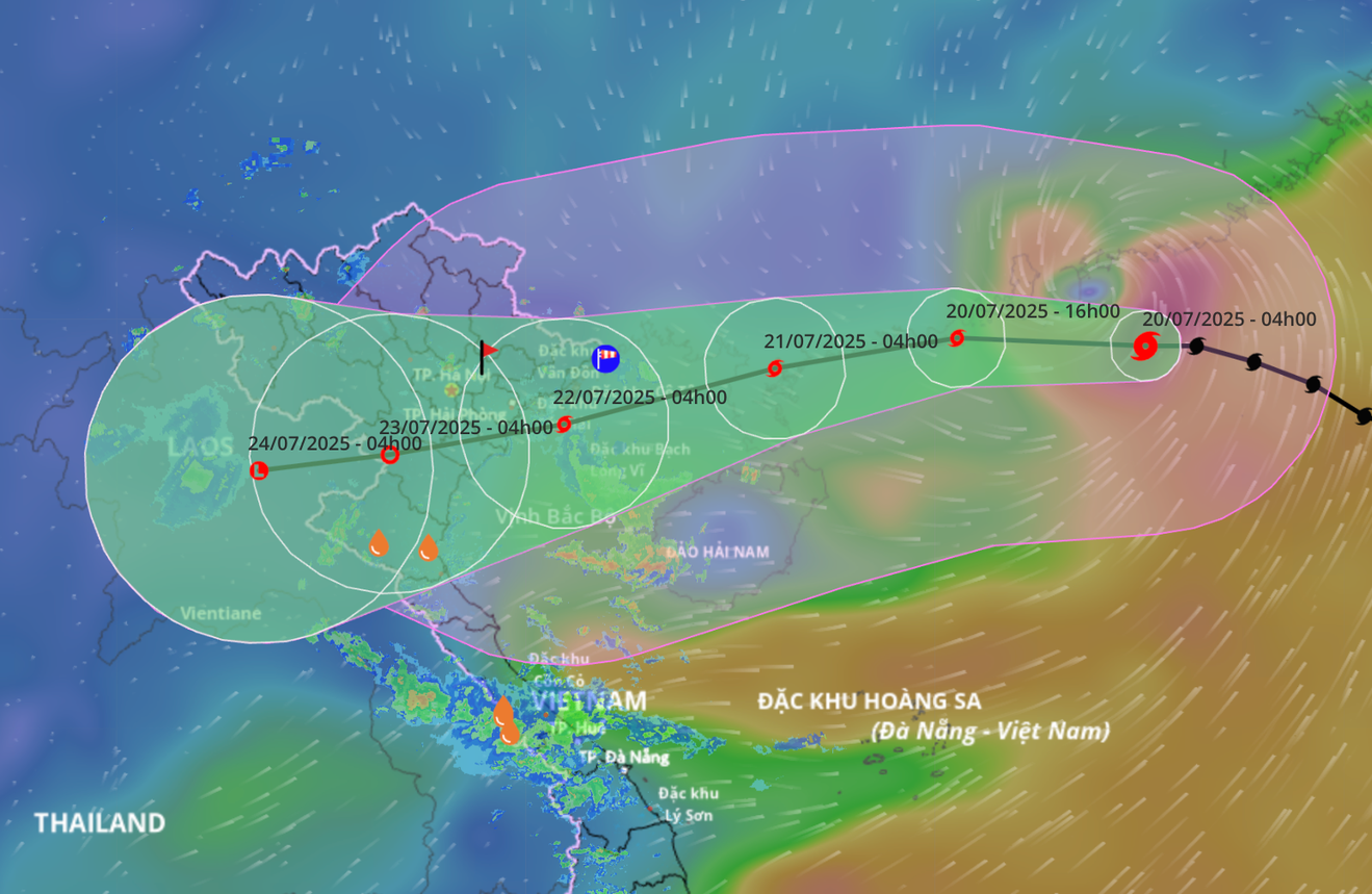 Cụ thể, trong 24h (tính từ 4h sáng 20/7), bão di chuyển rất nhanh theo hướng Tây, mỗi giờ đi được khoảng 20-25km và tiếp tục mạnh thêm. Đến 4h sáng 21/7, tâm bão trên đất liền phía đông bắc bán đảo Lôi Châu (Trung Quốc) với cường độ mạnh cấp 11-12, giật cấp 15.
