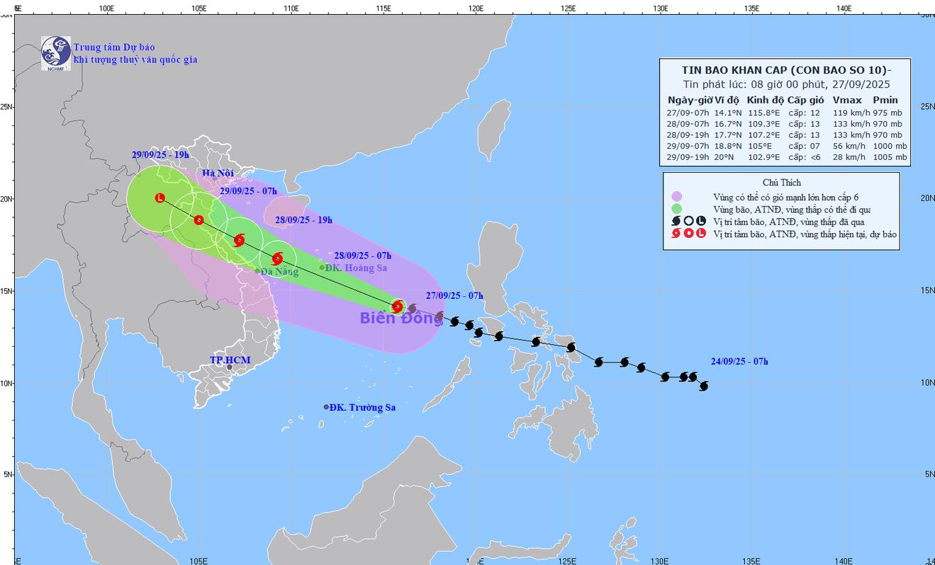 Trung tâm Dự báo Khí tượng Thủy văn Quốc gia nhận định, bão số 10 là cơn bão rất đặc biệt. Tốc độ di chuyển nhanh gấp đôi tốc độ trung bình của một cơn bão, cường độ bão mạnh, phạm vi ảnh hưởng rộng, có thể gây tác động tổng hợp của nhiều loại hình thiên tai như gió mạnh, mưa lớn, lũ, lũ quét, sạt lở đất và ngập lụt ven biển.