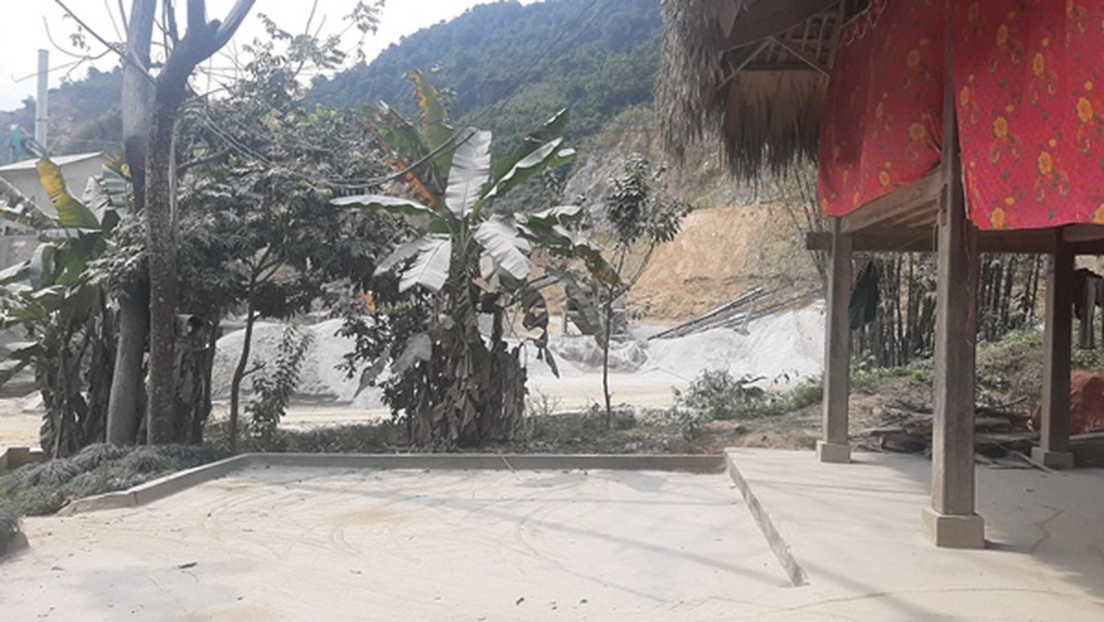 Bị ảnh hưởng nhiều nhất có lẽ là gia đình bà Lý Thị Lới, nhà bà ngay cạnh bãi tập kết cũng là khu vực xay, nghiền đá, từ cổng vào nhà là một màu trắng của bụi đá bao kín toàn bộ khuôn viên, gia đình phải sử dụng những tấm bạt để che chắn các cửa sổ chống bụi.