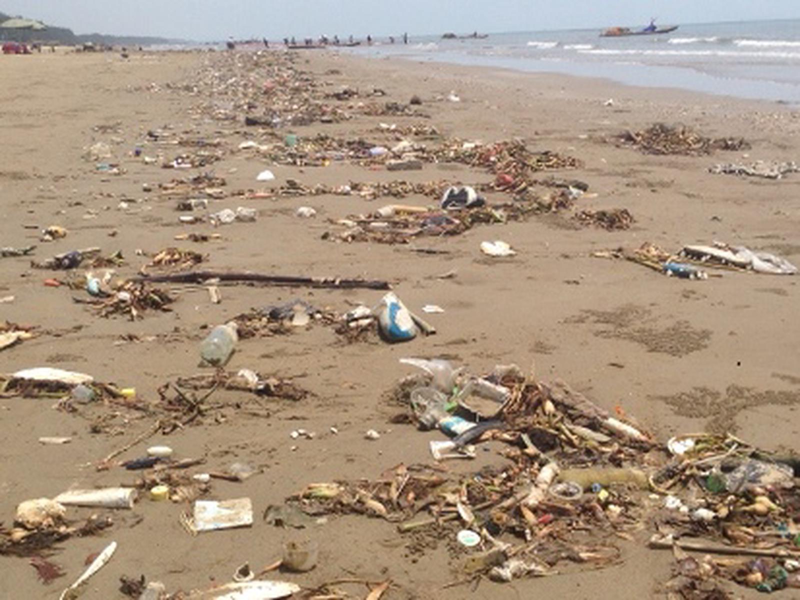 Rác thải tràn ngập bờ biển Hải Hòa. Ảnh: Văn Thanh