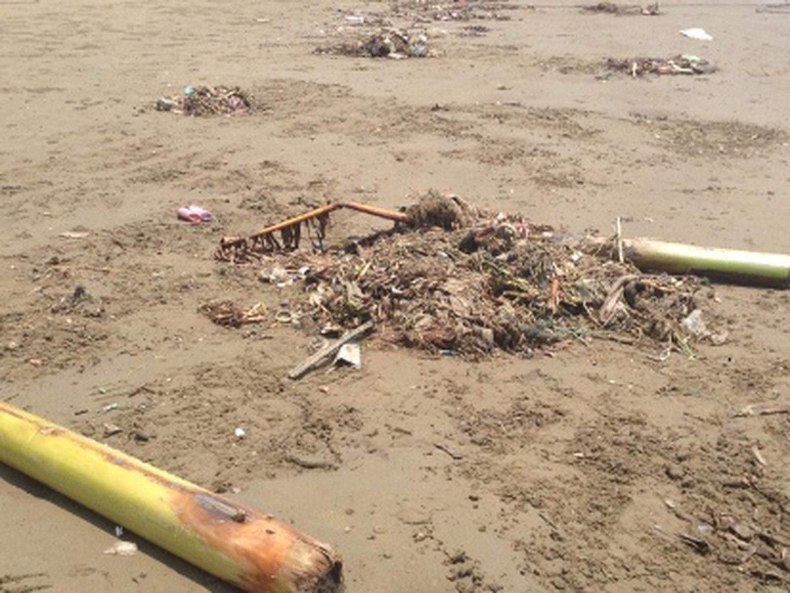 Cây cối, rác thải sinh hoạt, chai lọ thủy tinh, chai rượu của thực khách đều được "tập kết" ở đây. Mùi xú uế theo đó bốc lên khiến những du khách muốn xuống tắm biển cũng ái ngại.