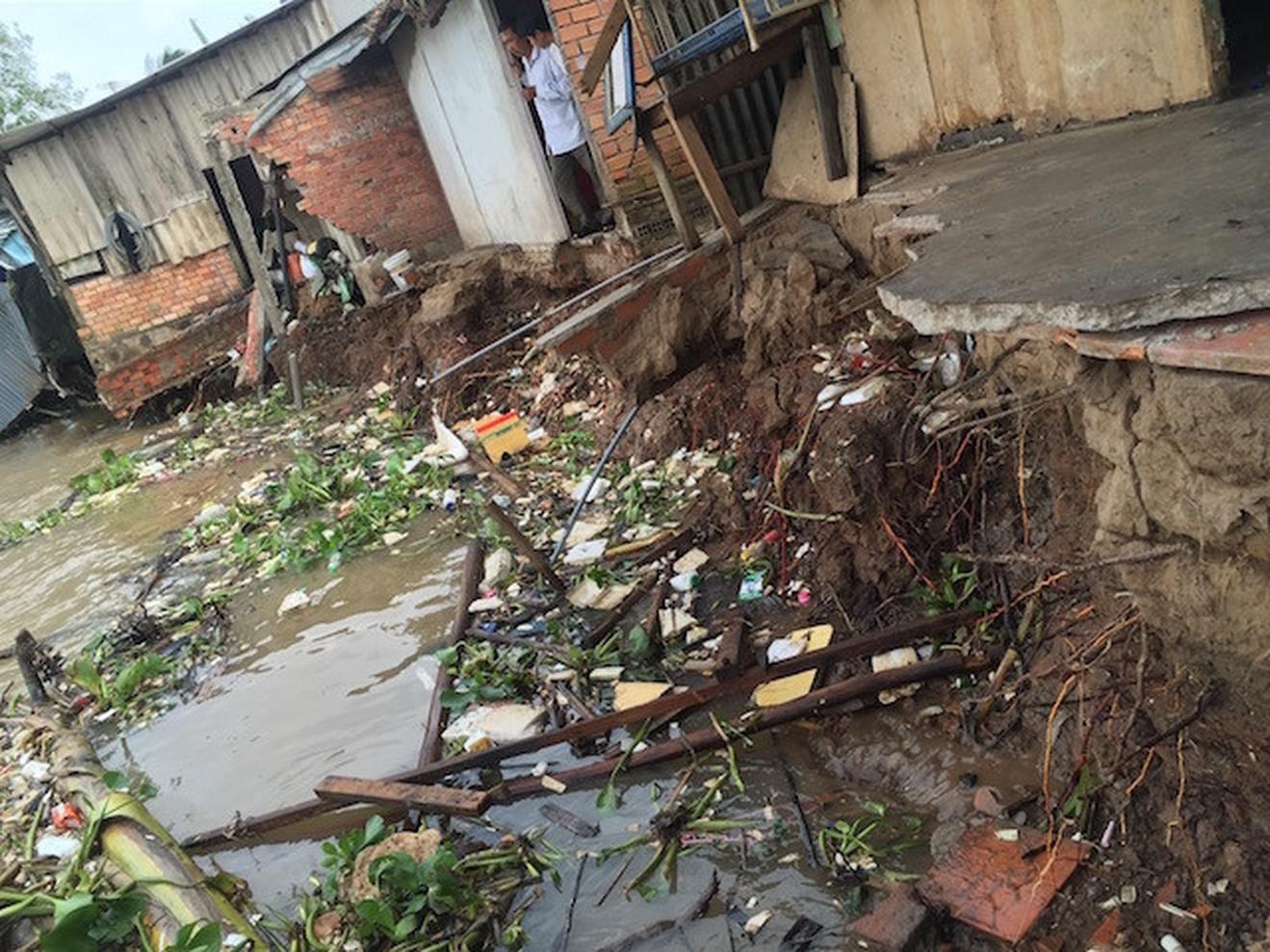 Thời điểm xảy ra sạt lở bất ngờ nên nhiều người đã bị cuốn trôi xuống sông cùng nhiều tài sản giá trị khác. Rất may, vụ sạt lở không gây thương vong về người.