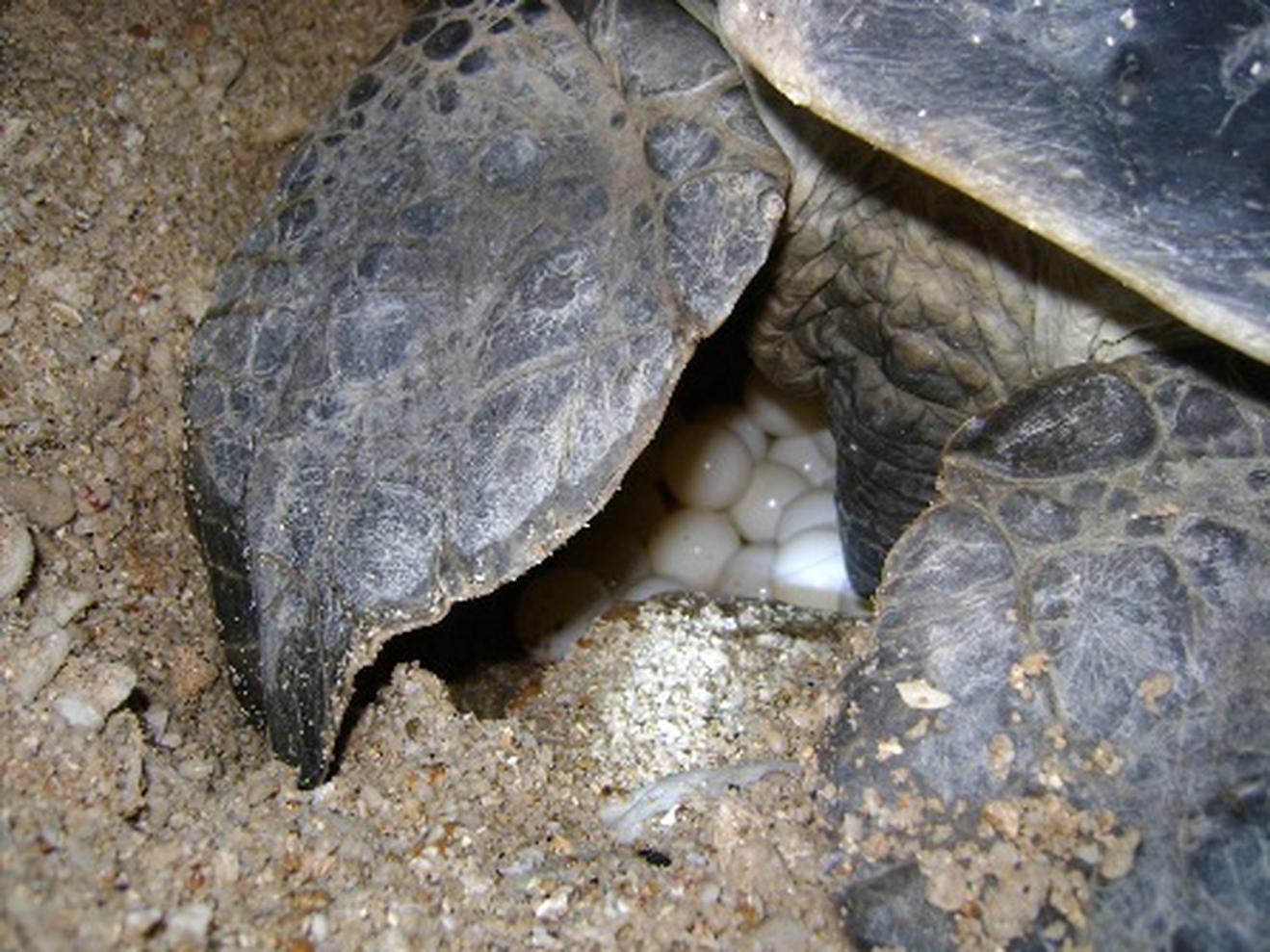 Rùa mẹ đẻ trứng. Ảnh: Ngọc Phó