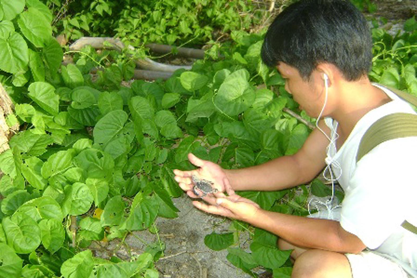 Kiểm tra rùa con mới nở. Ảnh: Ngọc Phó