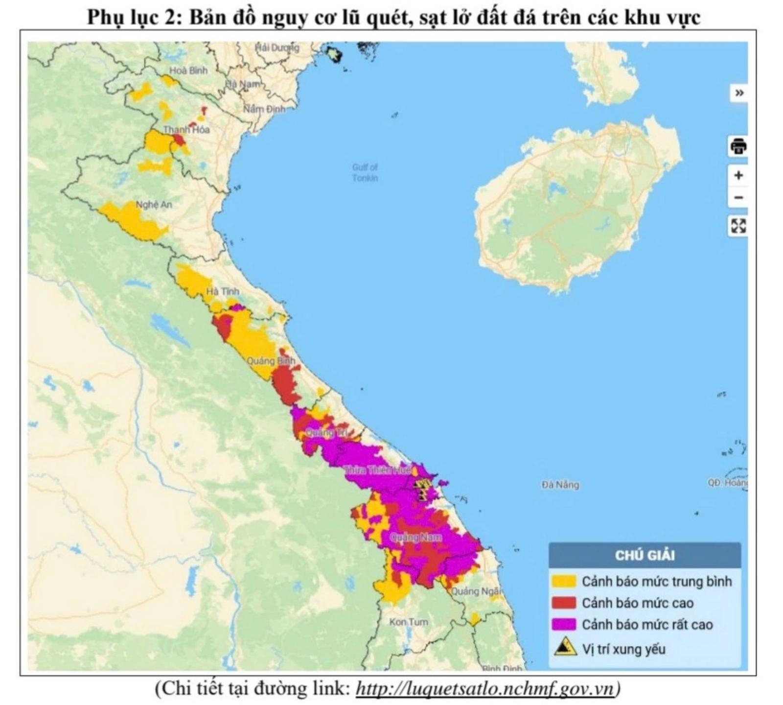 Bản đồ nguy cơ lũ quét, sạt lở đất trên các khu vực
