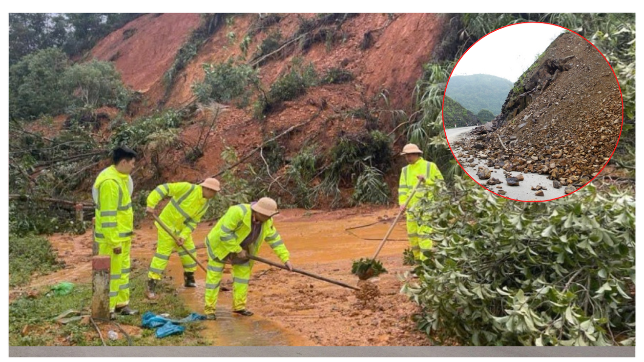 Lực lượng chức năng khẩn trương khắc phục sạt lở sau mưa lớn, bảo đảm giao thông thông suốt. Ảnh: C.B.O