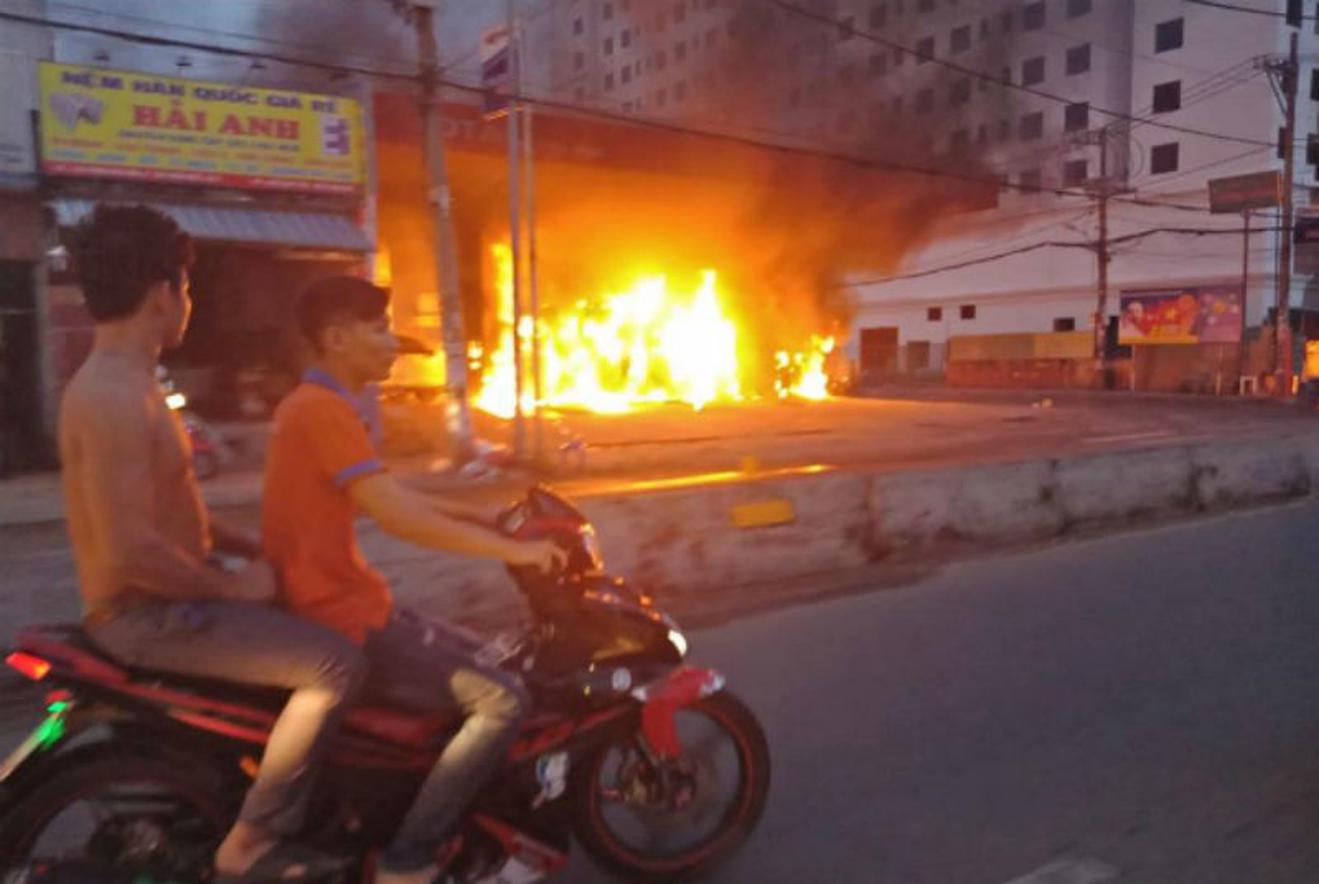Nhiều người đang đổ xăng dắt xe bỏ chạy thục mạng, thậm chí có người còn vứt luôn xe, nhanh chóng thoát thân. Lực lượng tại chỗ dùng bình gas mini cố khống chế nhưng bất thành. Lửa sau đó lan rộng và táp ra đường khiến giao thông rối loạn.