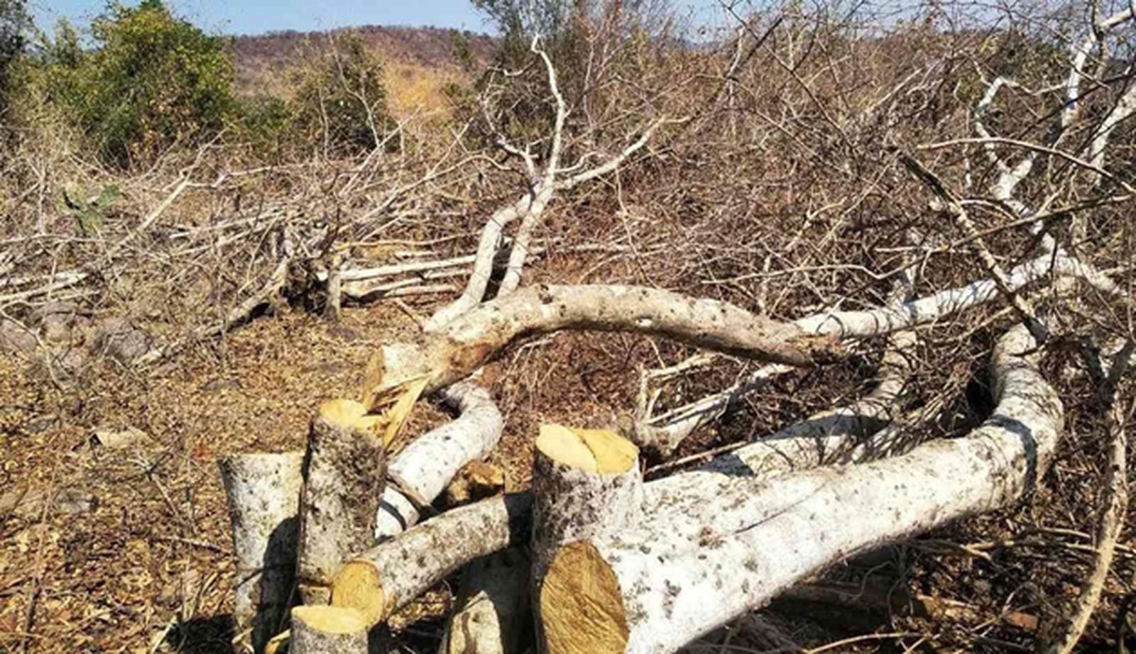 Cây rừng bị ông Tướng chặt phá. Ảnh: CTV Khoa Lê