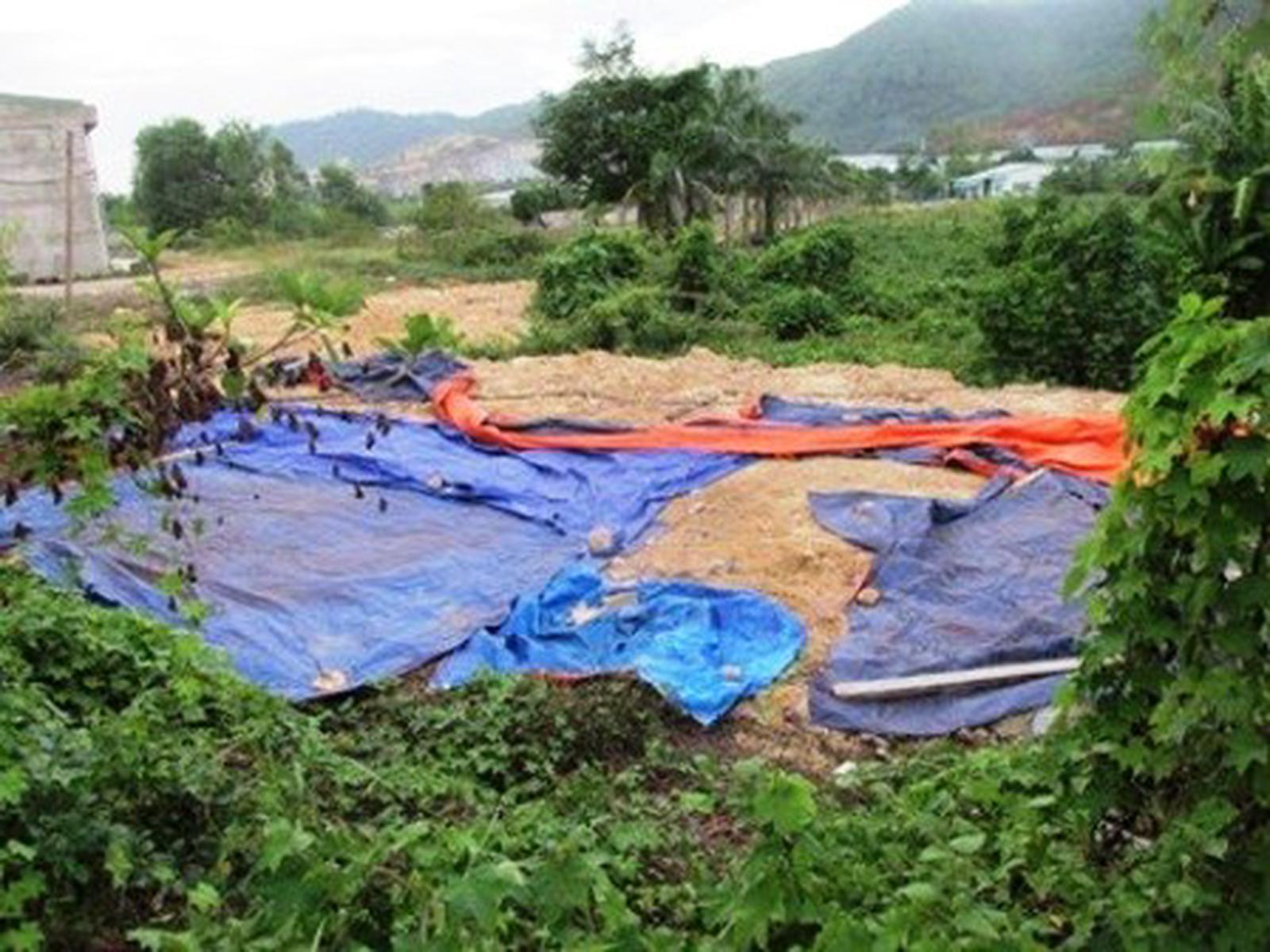 Chất thải được Cty Ánh Dương vận chuyển về khuôn viên chôn dưới đất. Ảnh: Ngọc Phó