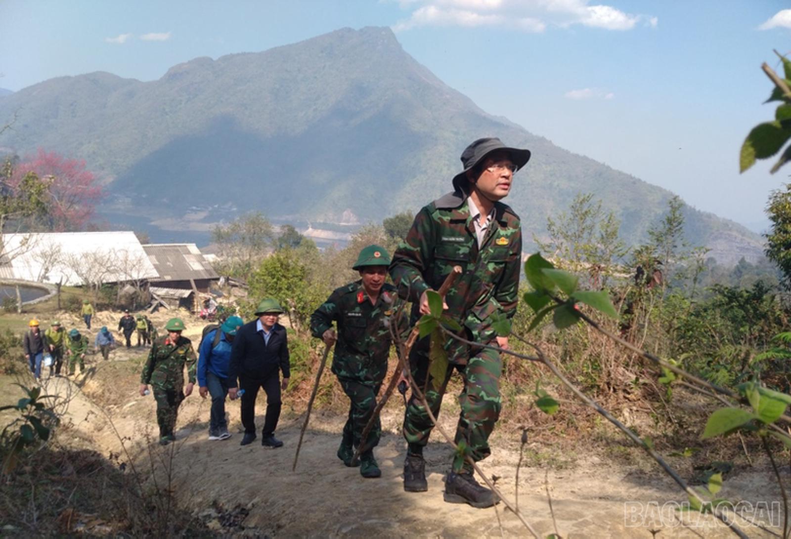 Chủ tịch UBND tỉnh Lào Cai Trịnh Xuân Trường chỉ huy chữa cháy hướng thôn Dền Thàng. Ảnh: Baolaocai