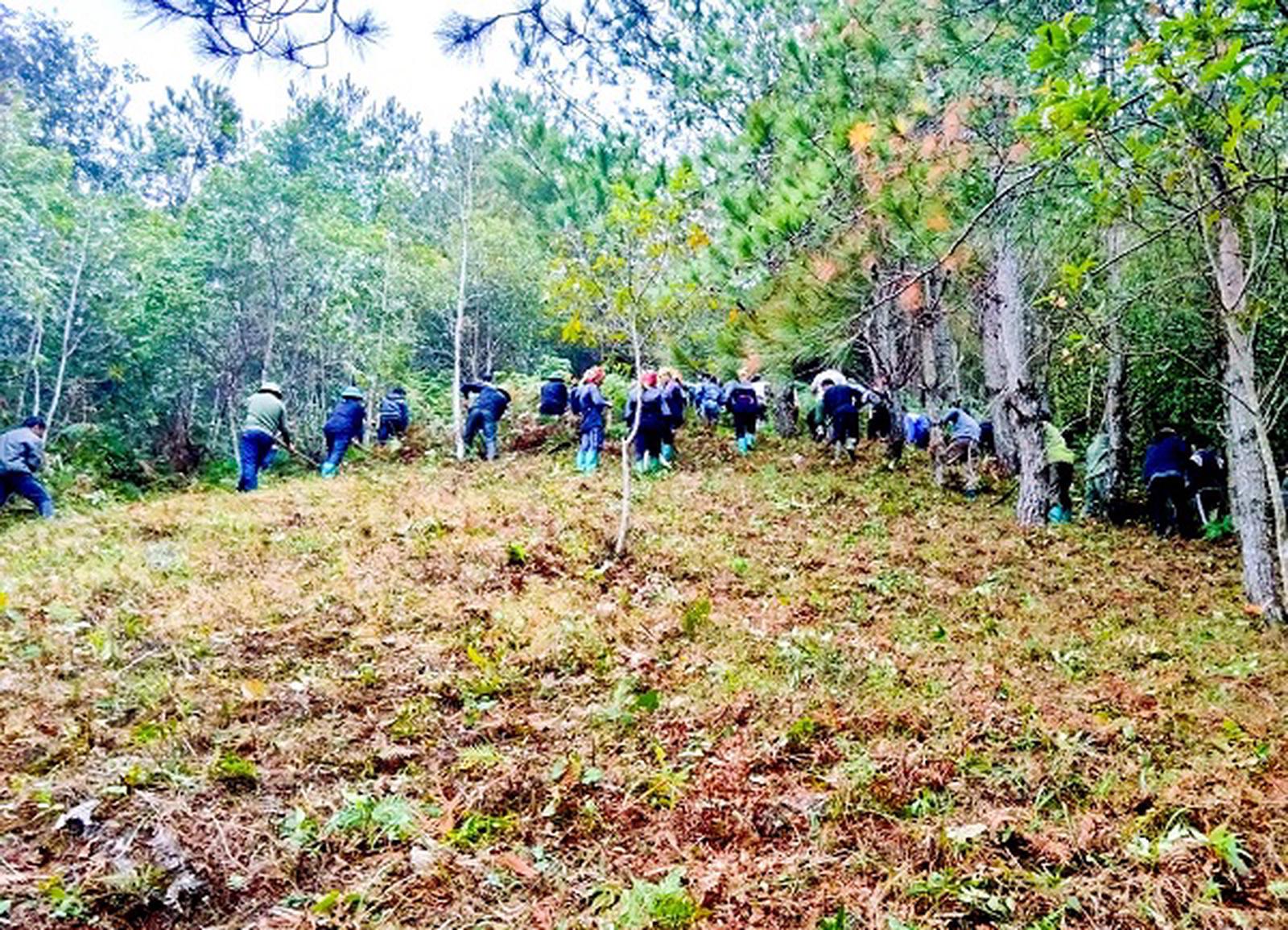 Người dân huyện Trạm Tấu tích cực tham gia trồng rừng. Ảnh: Hoàng Yên