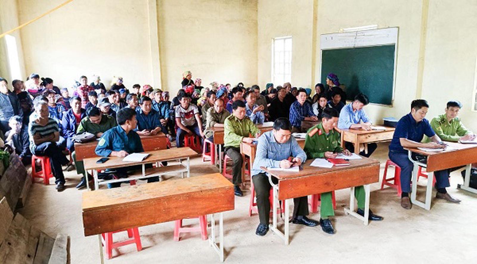 Phổ biến pháp luật về phòng cháy, chữa cháy rừng cho người dân 2 xã Khao Mang và Hồ Bốn, huyện Mù Cang Chải. Ảnh: Hoàng Yên