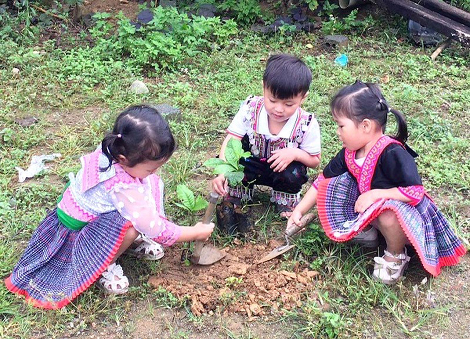 Các cháu học sinh người dân tộc thiểu số Trường Mầm Non xã Suối Giàng, huyệnVăn Chấn "Ươm mầm vì một tương lai xanh". Ảnh: Hoàng Yên