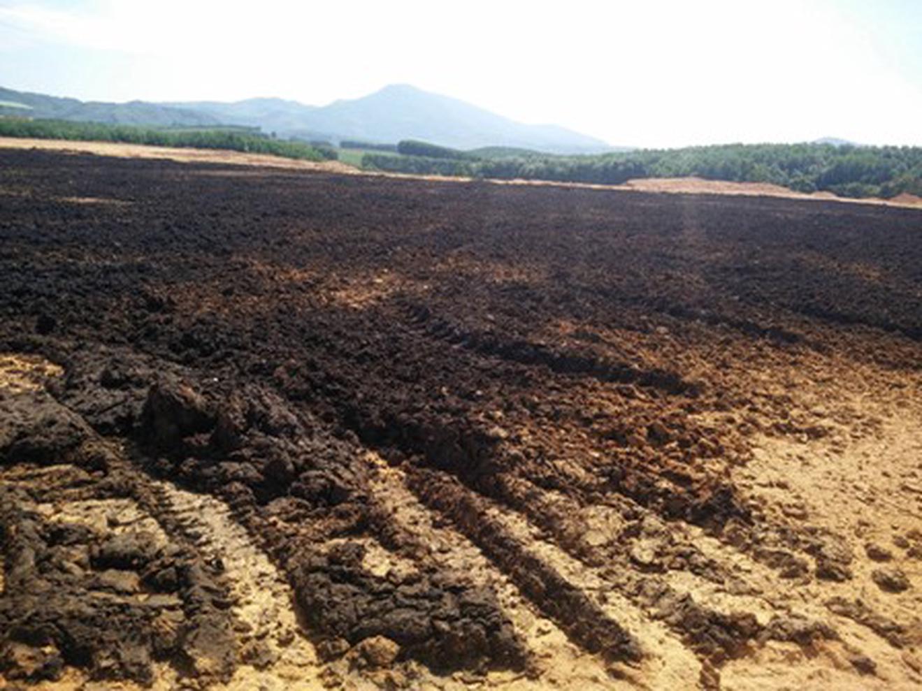 Toàn bộ khu san lấp mặt bằng gần 2000m2 được Cty Bình Hà sử dựng để phơi phân trực tiếp gây ô nhiễm môi trường. Ảnh: Tăng Thành