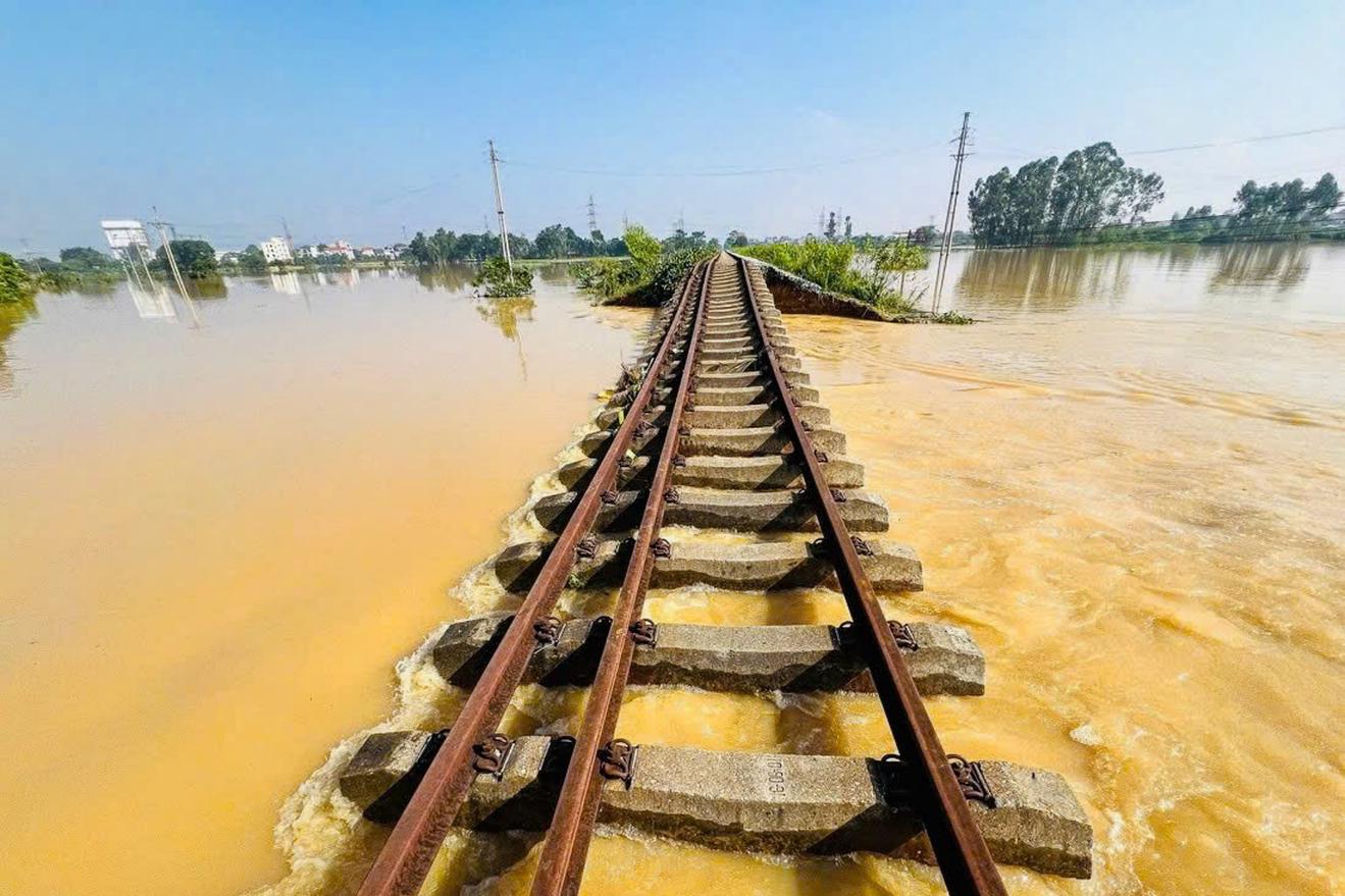 Cục Đường sắt Việt Nam yêu cầu các đơn vị khẩn trương khắc phục hậu quả cơn bão số 10, số 11 và khẩn trương chuẩn bị ứng phó với bão số 12. Ảnh: PV