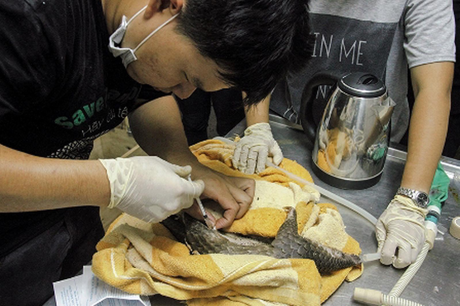 Tê tê được kiểm tra và chăm sóc sức khoẻ tại Trung tâm. Ảnh: Ngọc Phó